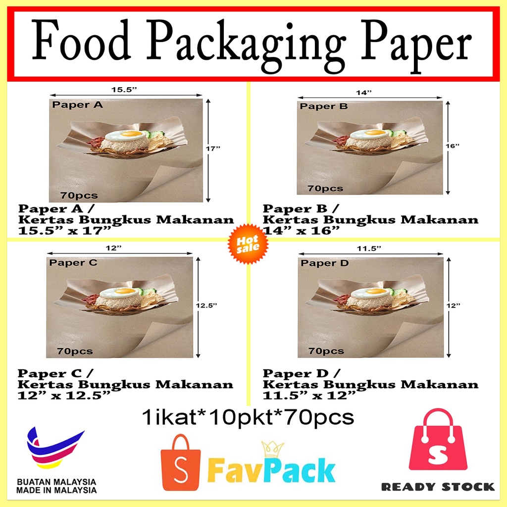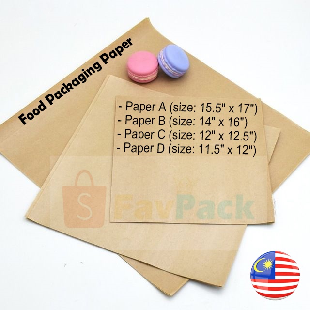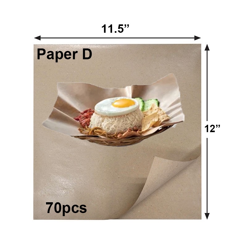 [READY STOCK] Food Packaging Paper - Brown / Kertas Minyak / Kertas bungkus Makanan - Paper A & B & C & D (70pcs)