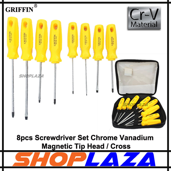 [ READY STOCK ] Griffin 8pcs Screwdriver Set Chrome Vanadium Magnetic Tip Head / Cross Insulated Ele Screwdriver Kit