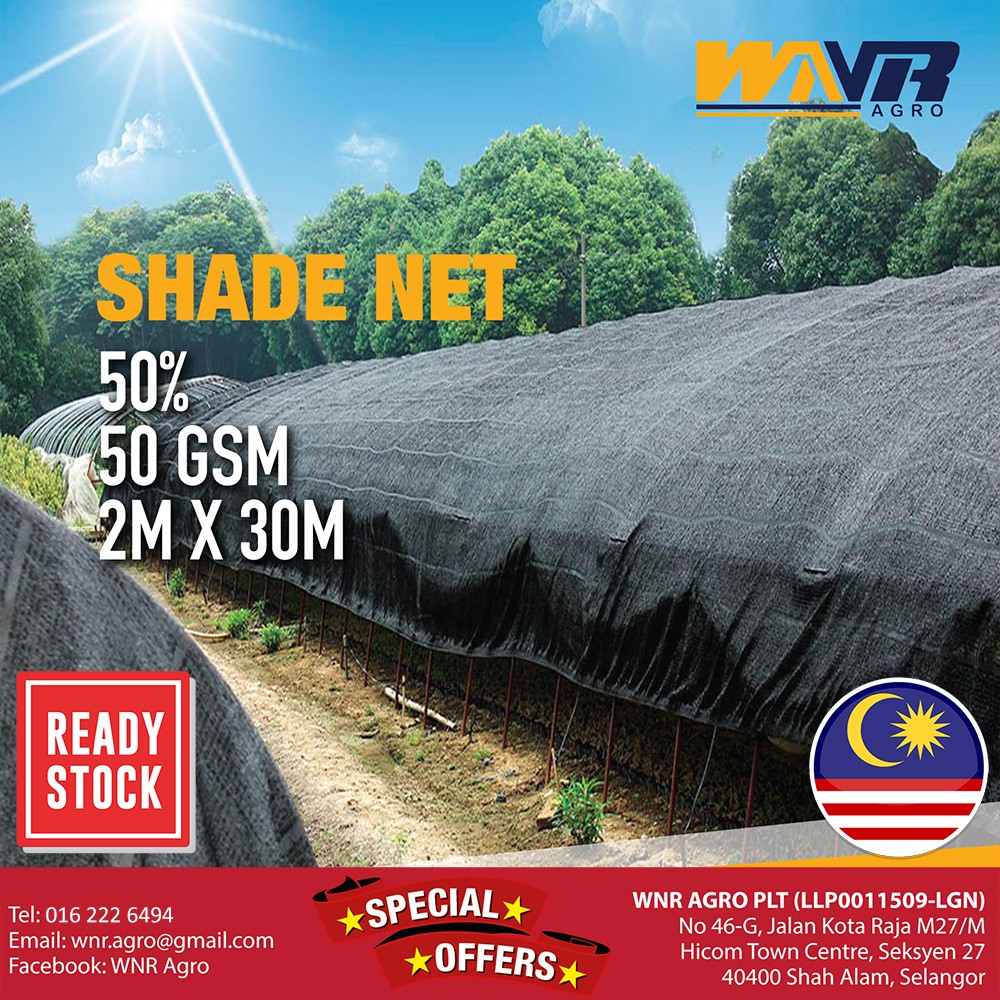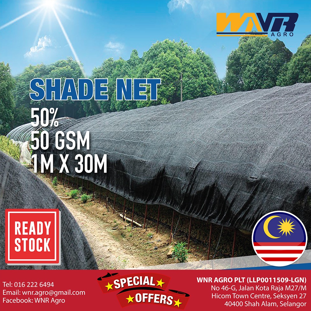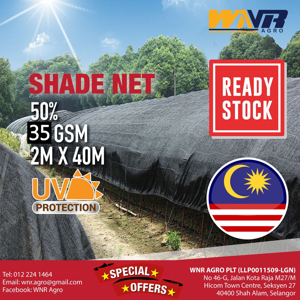Shade Net HDPE Sun Shading Orchid Greenhosue Jaring Hitam Pertanian 2M x 40M & 2M x 30M 50% UV 35GSM 50 GSM