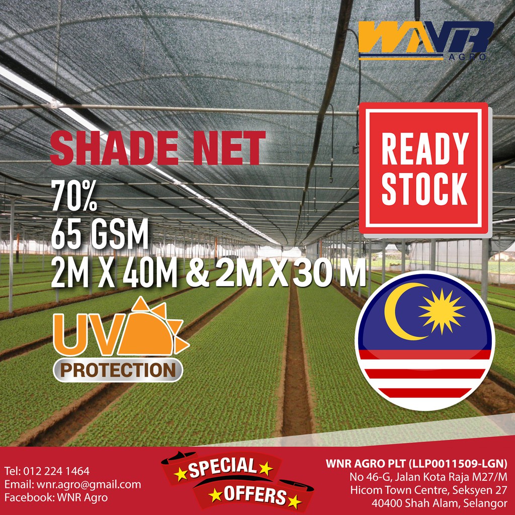 Shade Net HDPE Sun Shading Orchid Greenhosue Jaring Hitam Pertanian 2M x 40M & 2M x 30M 70% UV 65GSM