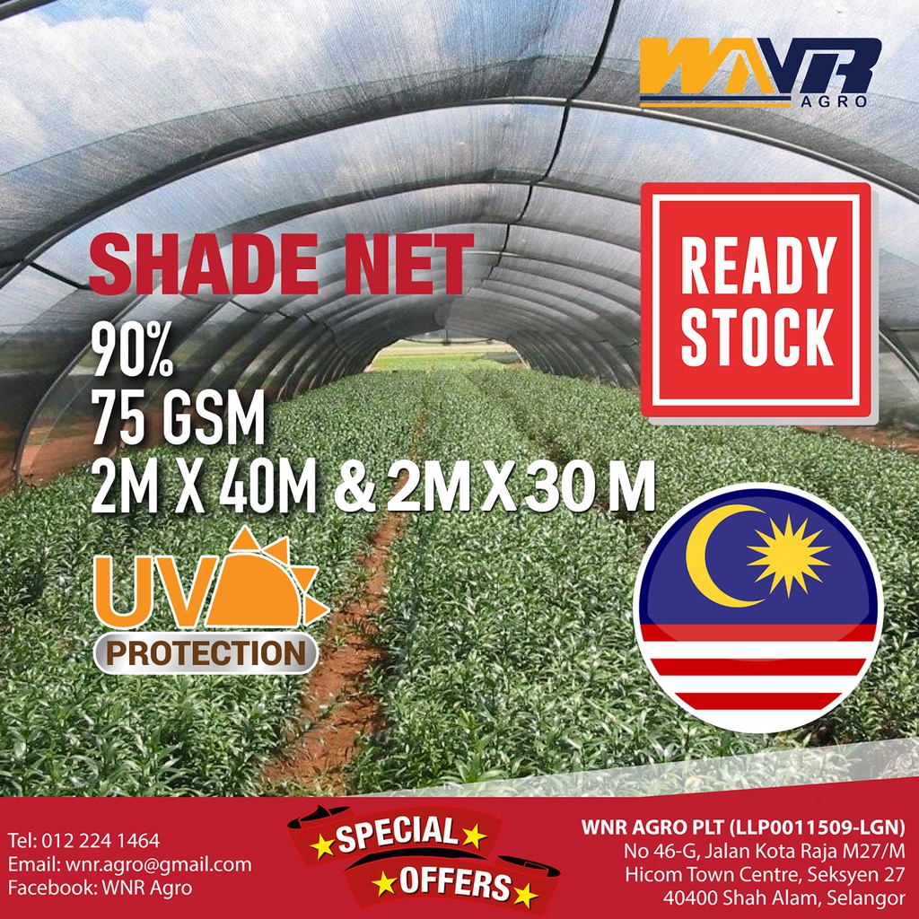 Shade Net HDPE Sun Shading Orchid Greenhosue Jaring Hitam Pertanian 2M x 40M & 2M x 30M 90% UV 75GSM