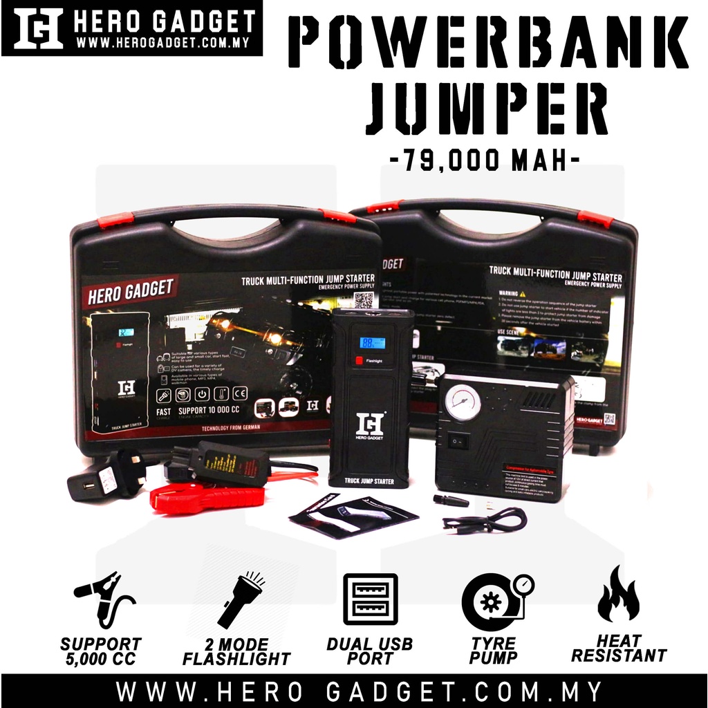 [[ READY STOCK ]] HERO GADGET POWERBANK JUMPER KERETA [79,000 MAH]