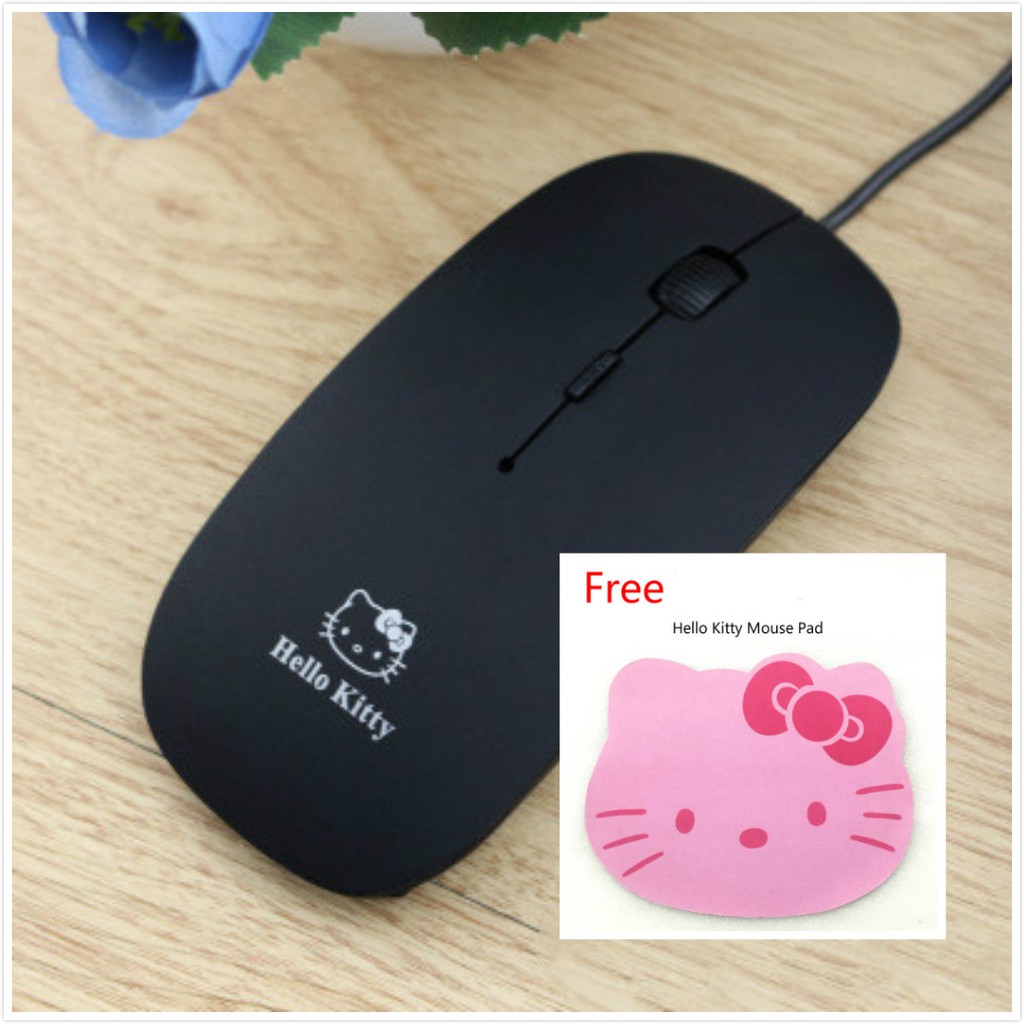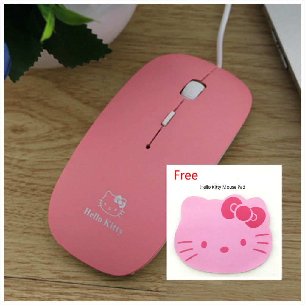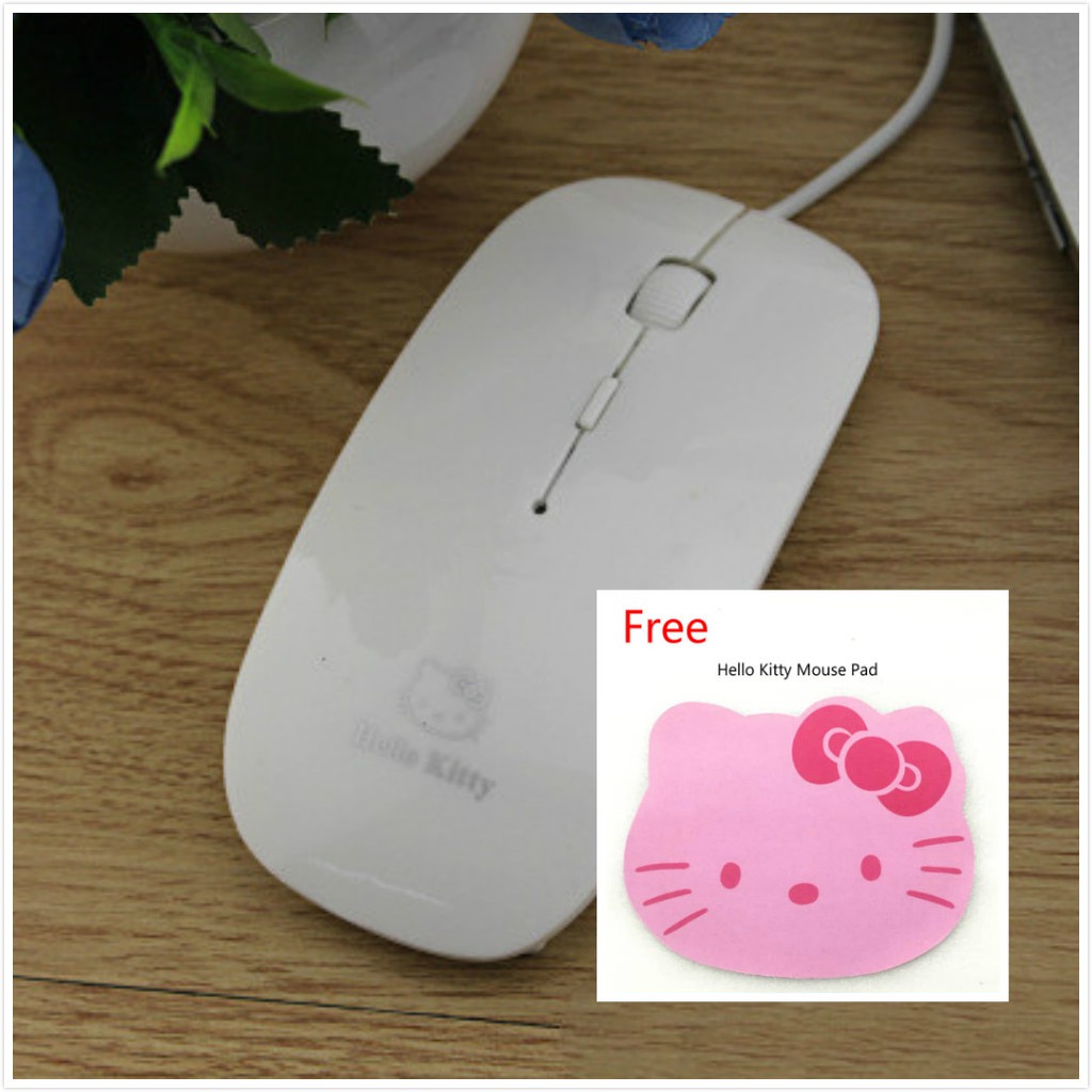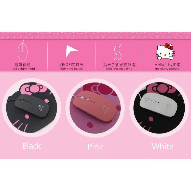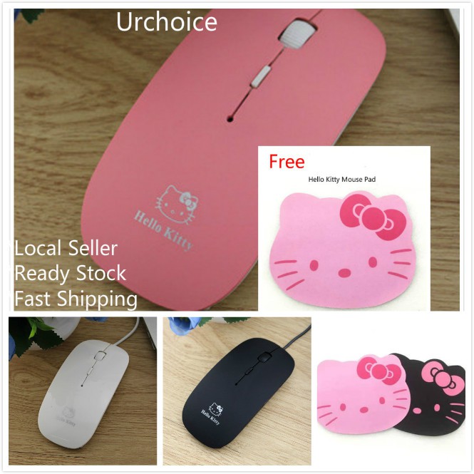 [READY STOCK] Hello Kitty USB Optical Wired Mouse With Scroll 1000-1200 DPI 4 buttons Hello Kitty Pad Tetikus