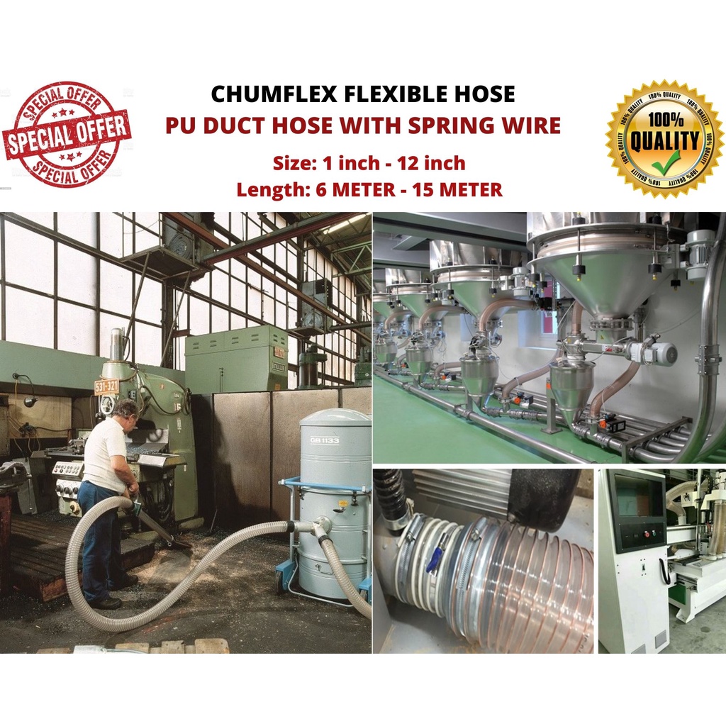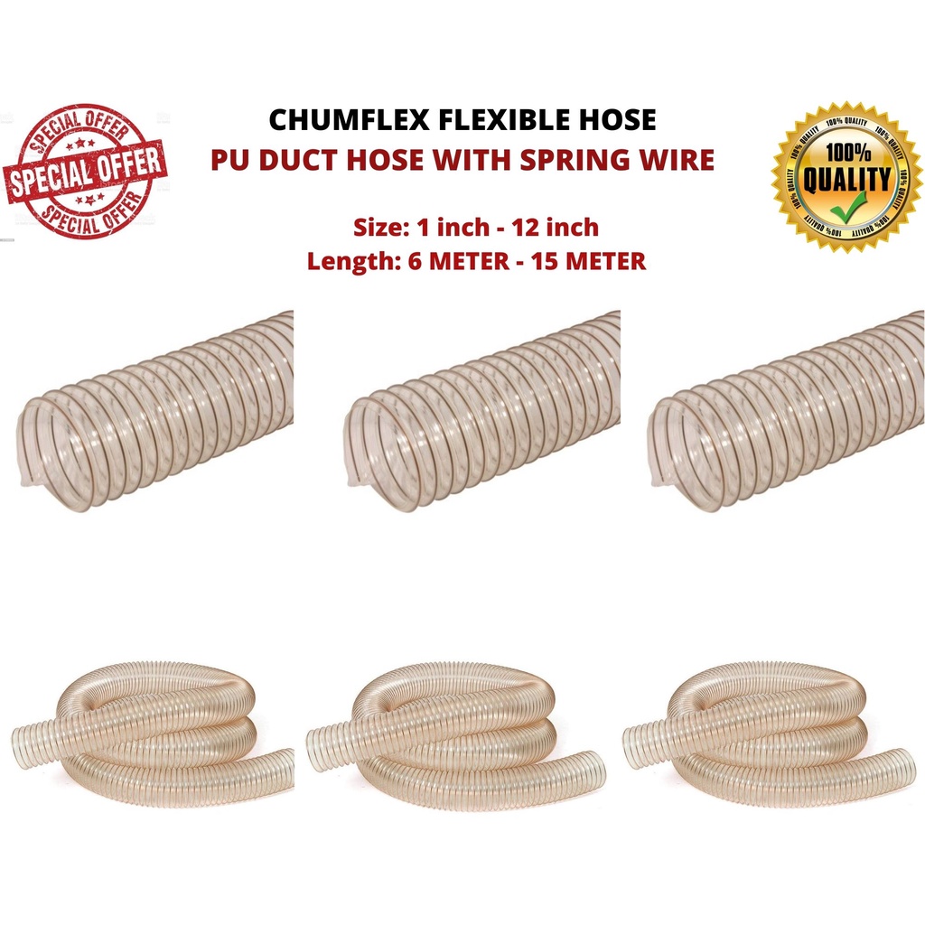 [READY STOCK-KL] Chumflex Fexible Pu Duct Hose With Spring Wire Hose (Size 1inch - 12inch)(Length 6MTR - 15MTR)