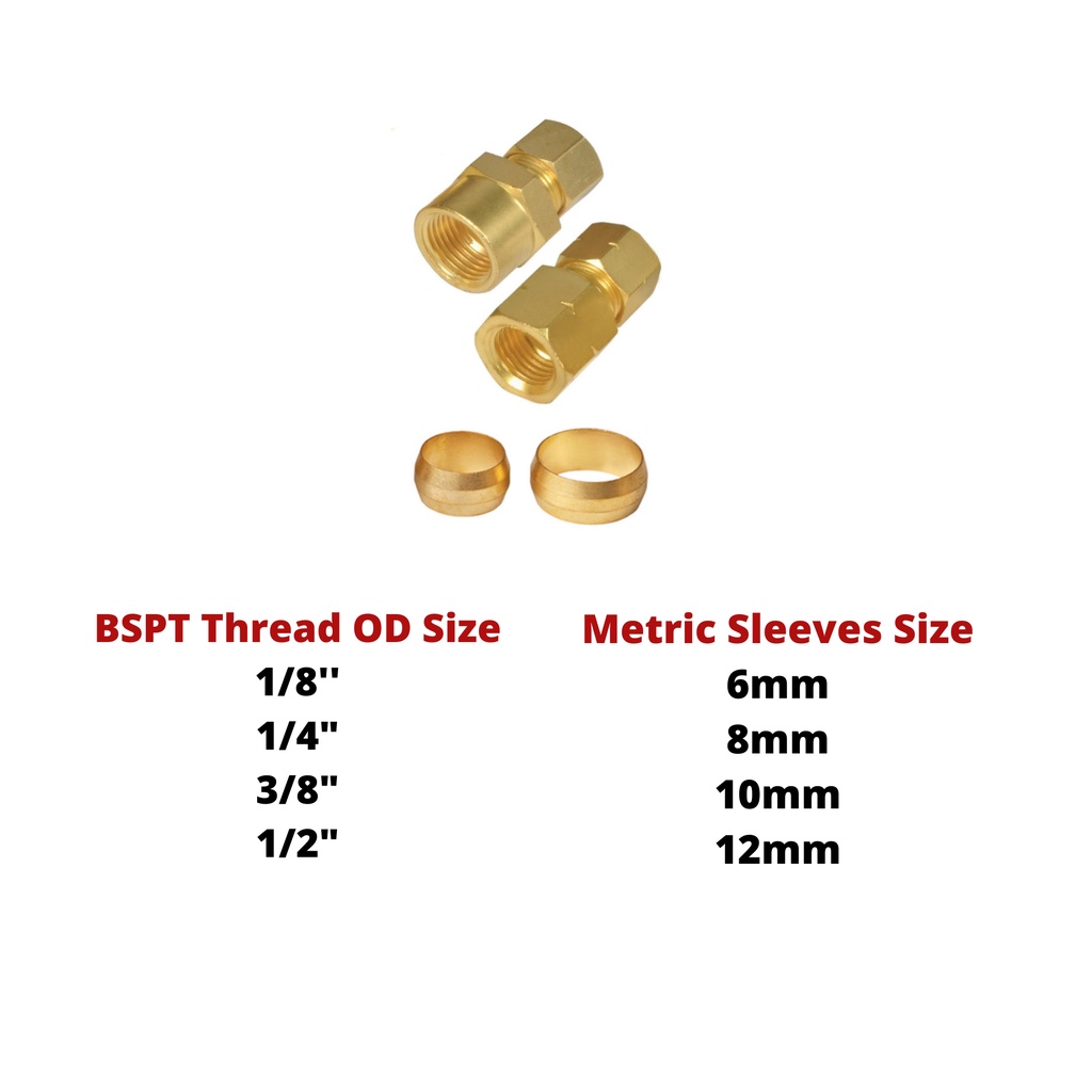 [READY STOCK-KL] Metric Compression Female Connector Brass Pipe Fitting Copper Pipe Connector (Sleeves MM Size)