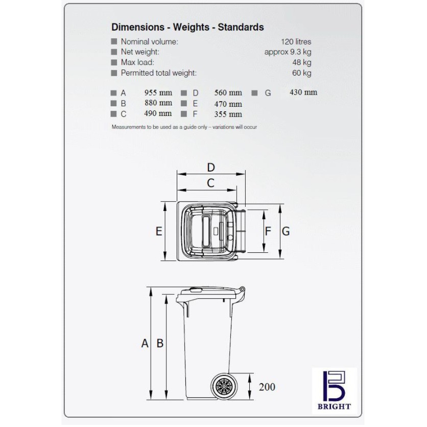 [READY STOCK] LEADER BP120 Mobile Garbage Bins 120L - [Green/Blue/Yellow Colour] Mobile WasteBin with Wheels