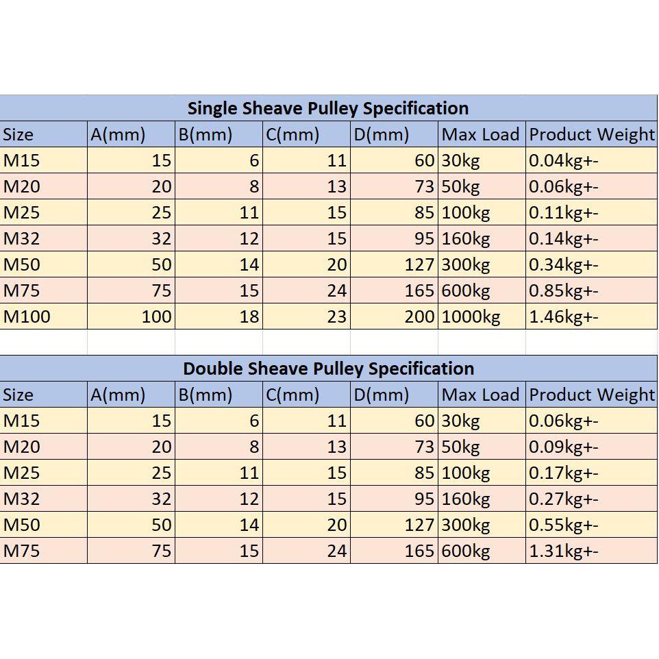 [READY STOCK] M15-50 Stainless Steel 1 / 2 Ways Wire Rope Single / Double Sheave Pulley Bearing Lifting Block ( 1 Unit )