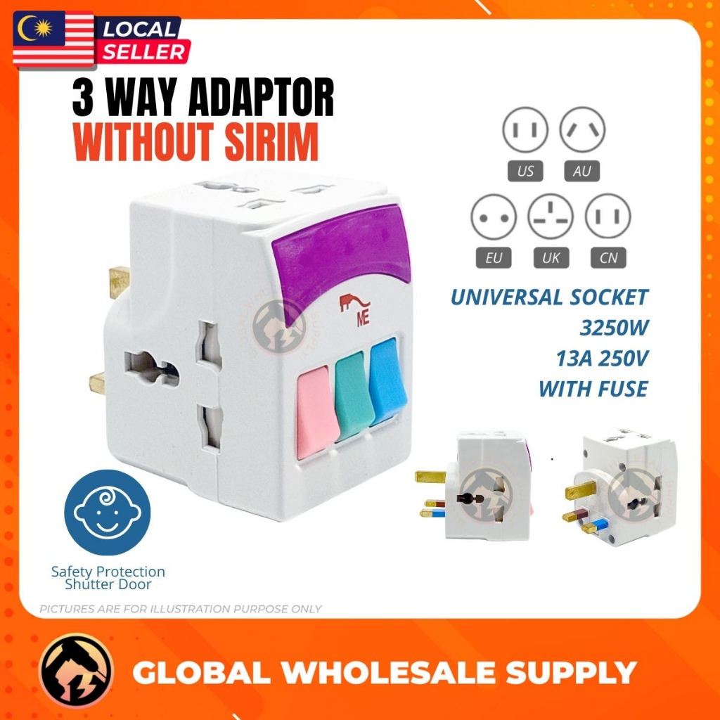 [READY STOCK] ME 13AMP 3 Way Adapter 3 Pin Plug / Universal Adapter Travel Adapter Universal For Home Electrical