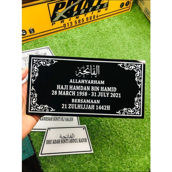 {READY STOCK} NAMA BATU NISAN_PLATE KUBUR {LELAKI DAN PEREMPUAN} (ACRYLIC) TEBAL 3mm/SAIZ BESAR