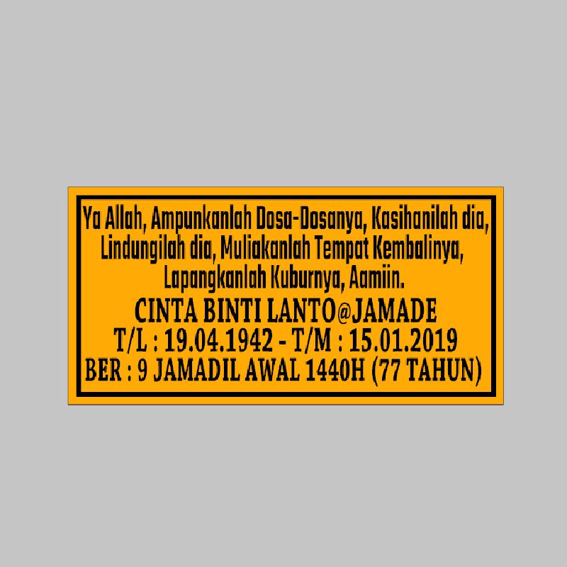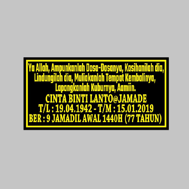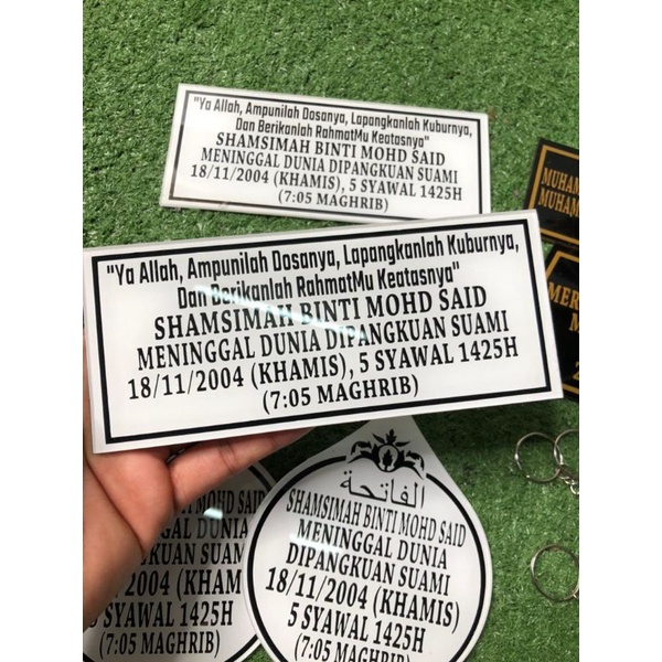 {READY STOCK} NAMA BATU NISAN_PLATE NAMA KUBUR_SEKALI DOA (ACRYLIC) TEBAL 3mm