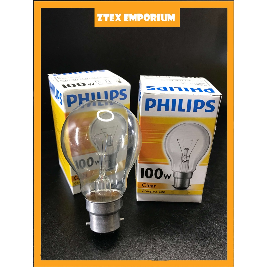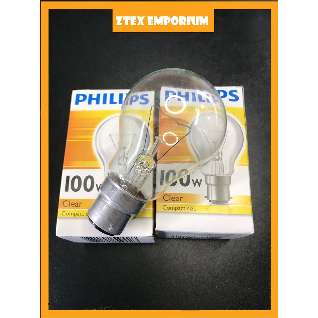 [READY STOCK] PHILIPS CLEAR 100W (B22) LIGHT BULB CLEAR WHITE COMPACT SIZE (EASY ON YOUR EYES)