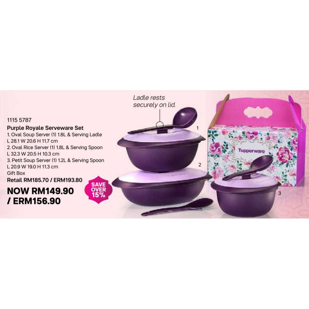 [READY STOCK] TUPPERWARE PURPLE ROYALE MICROWAVEABLE SERVERWARE SET FOR RAYA 2021