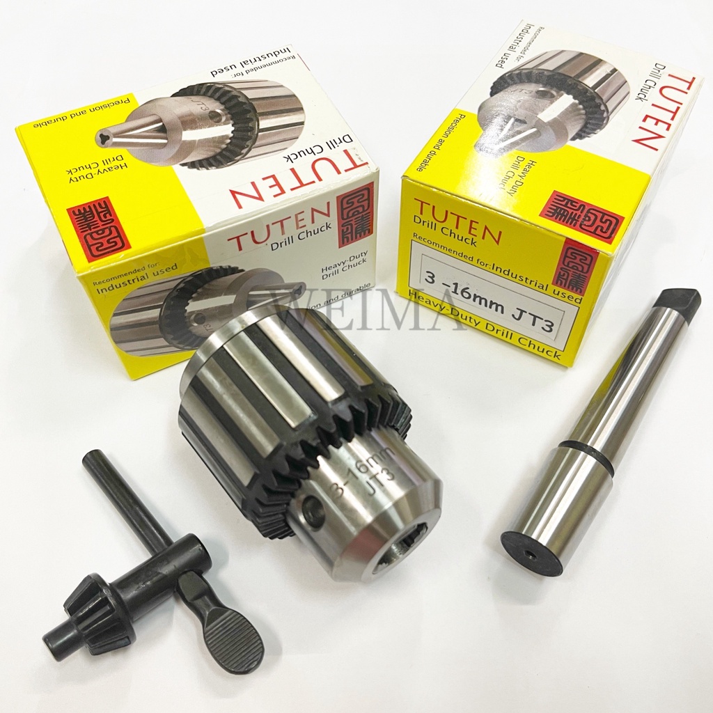 [READY STOCK] TUTEN KEY TYPE DRILL CHUCK 3-16mm JT3 C/W DRILL CHUCK ARBOR MT2/MT3/MT4/MT5-JT3