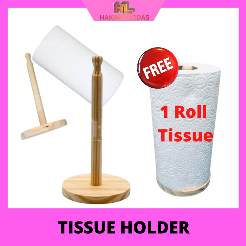 [READY STOCK] Tempat Letak Tisu Gulung Kayu Tisu Dapur Wooden Vertical Roll Paper Tissue Stand Holder Tisu holder