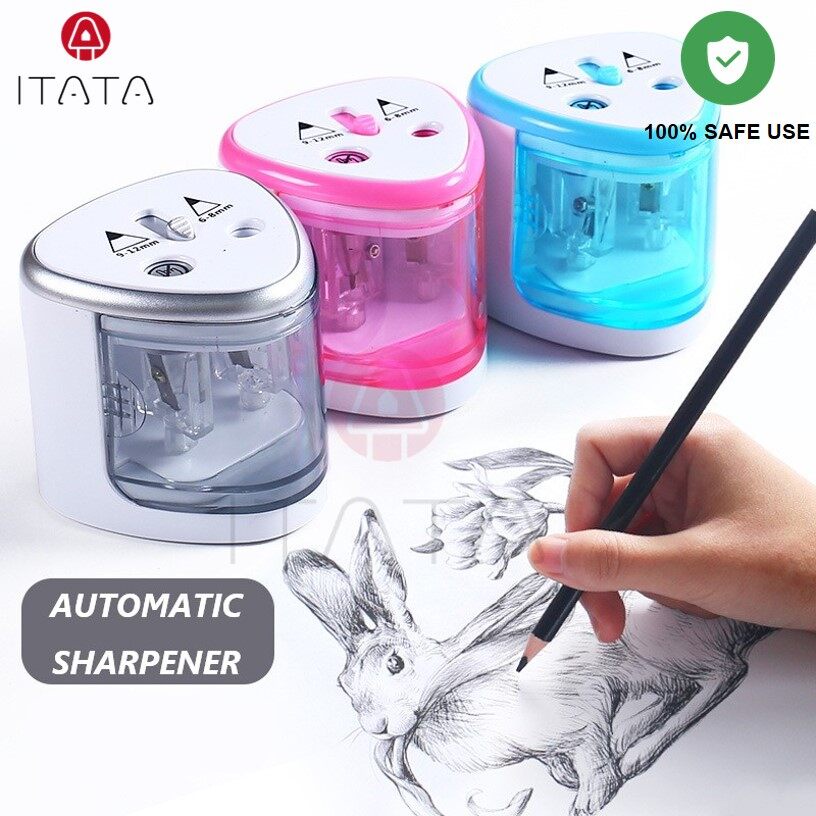 [READY STOCK] Tenwin Electric Pencil Sharpener Automatic Two Hole Jumbo Stationery Battery Operated Blade Sharpeners