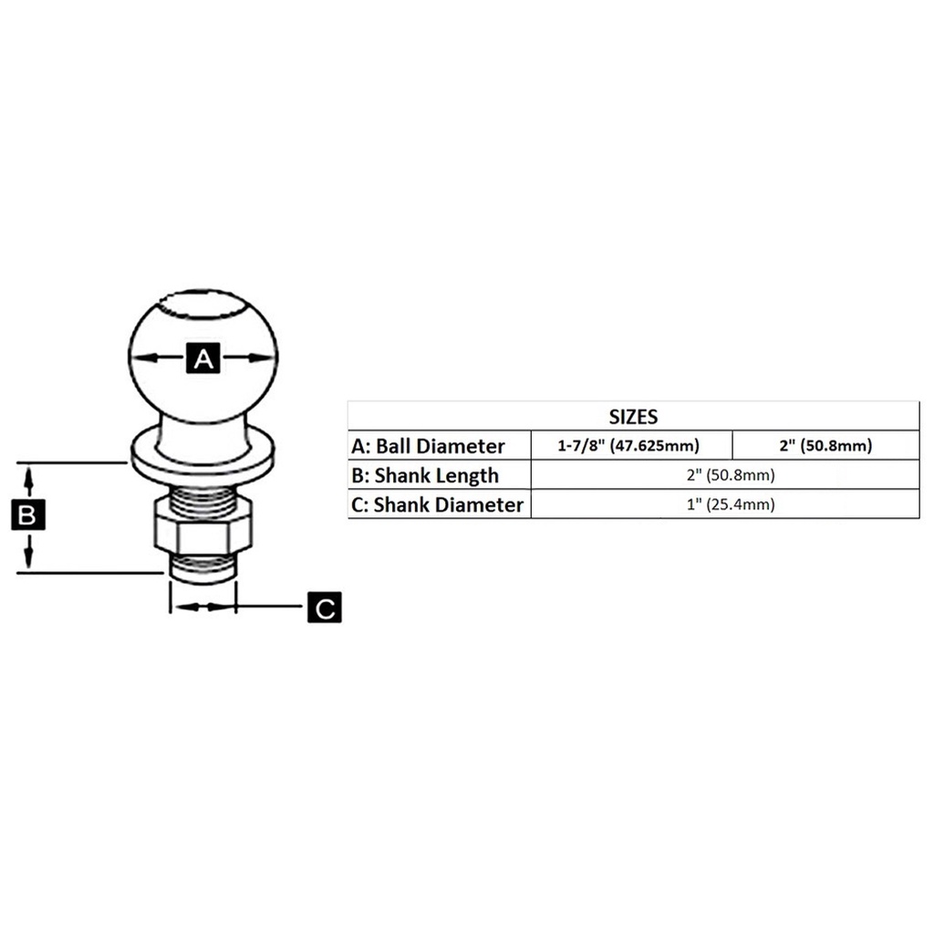 [READY STOCK] Trailer Hitch Ball For Towing (2 Sizes) 2" or 1-7/8" Tow Ball Towing Ball