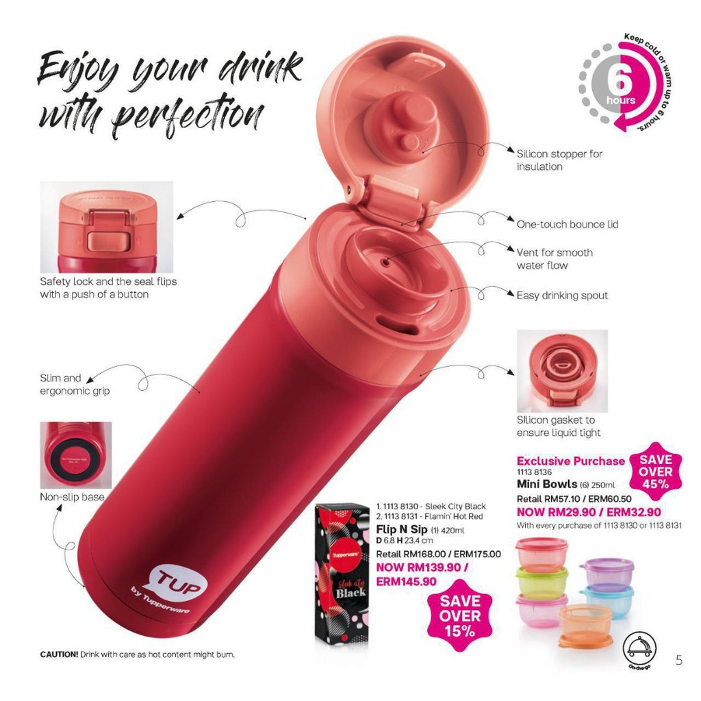 [READY STOCK] Tupperware Flip N Sip Thermos Flask 420ml
