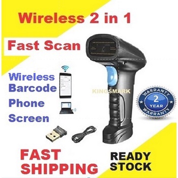 [ READY STOCK ] Wireless Wired Laser Hand hold Barcode Scanner POS SYSTEM Reader long Range ( 2 YEARS WARRANTY)