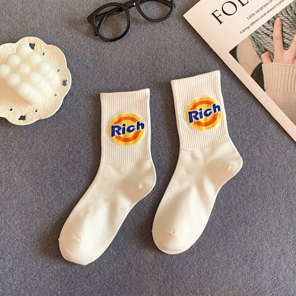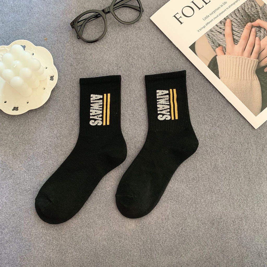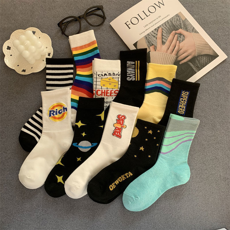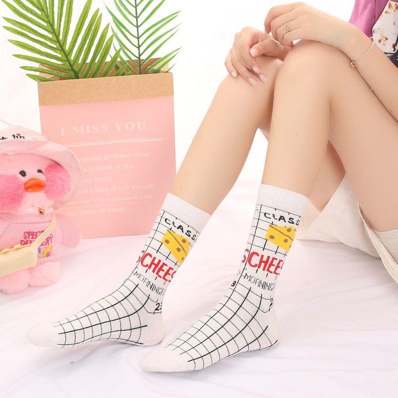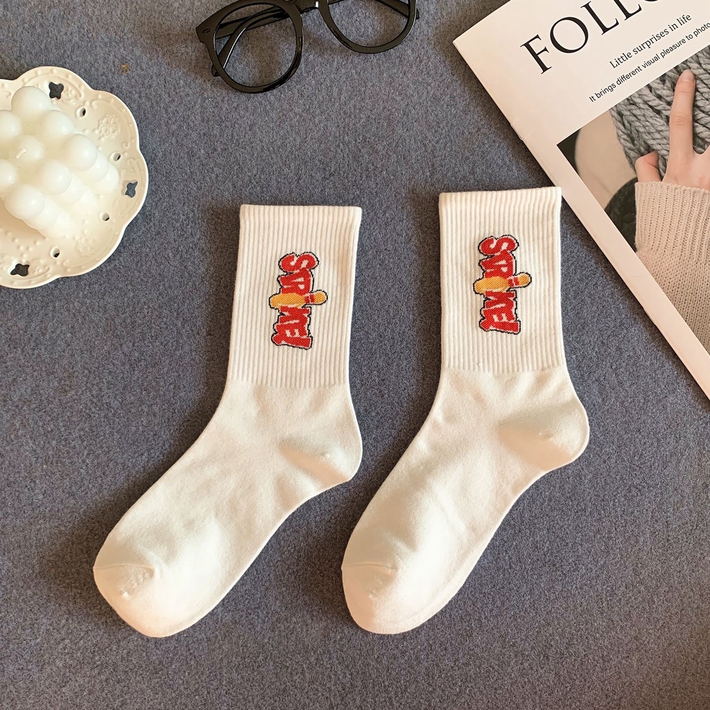 [READY STOCK]Women socks cartoon cotton letter embroidery socks college style tube socks