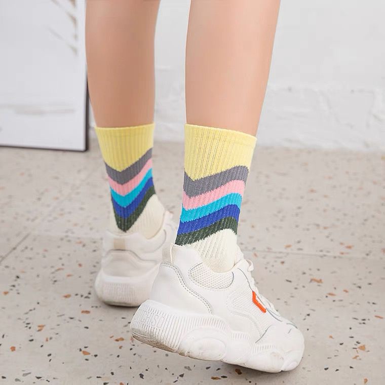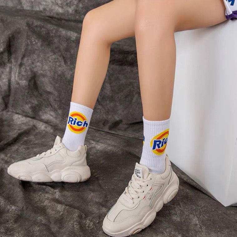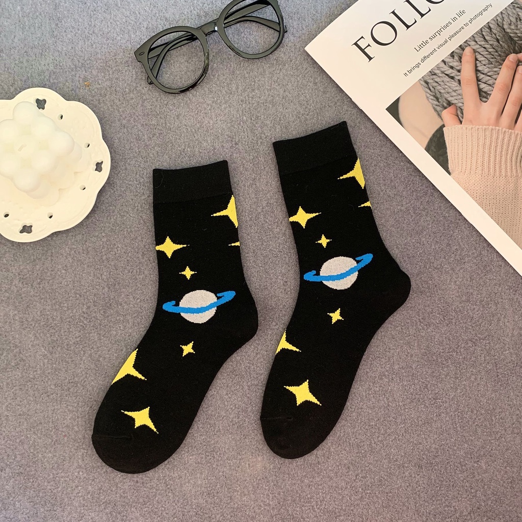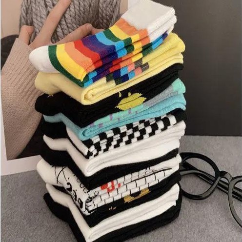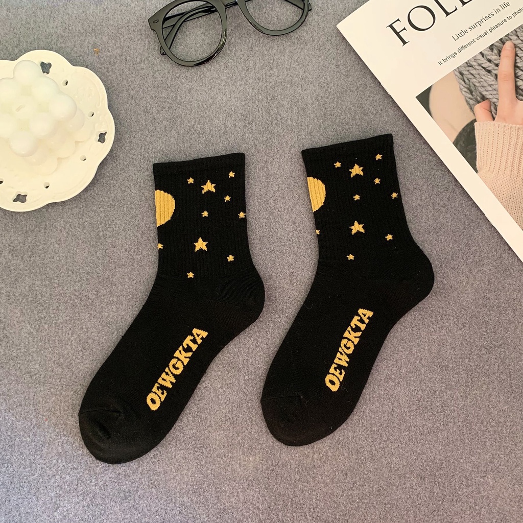 [READY STOCK]Women socks cartoon cotton letter embroidery socks college style tube socks