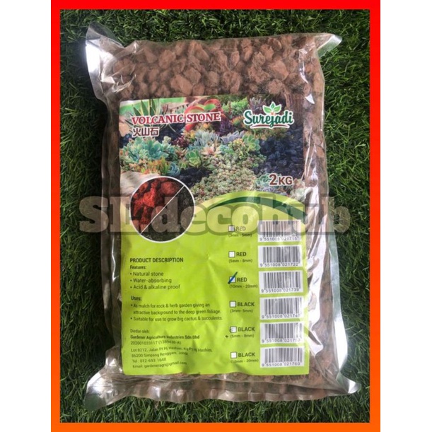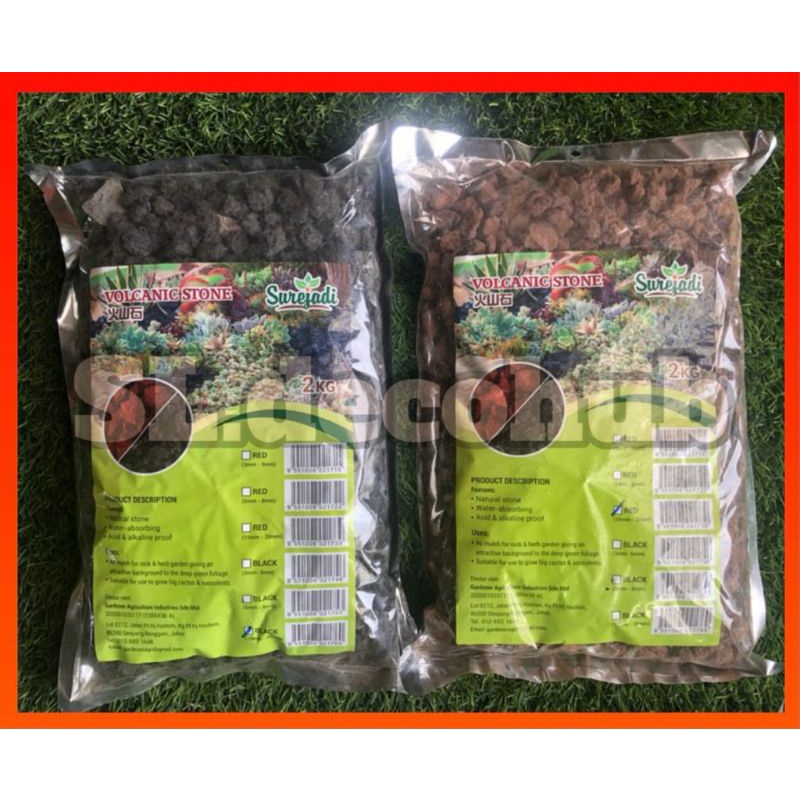 [READYSTOCK] 2KG LAVA ROCK VOLCANIC STONE Bio Filter & Growing Media Volcano Stone (RED & BLACK)
