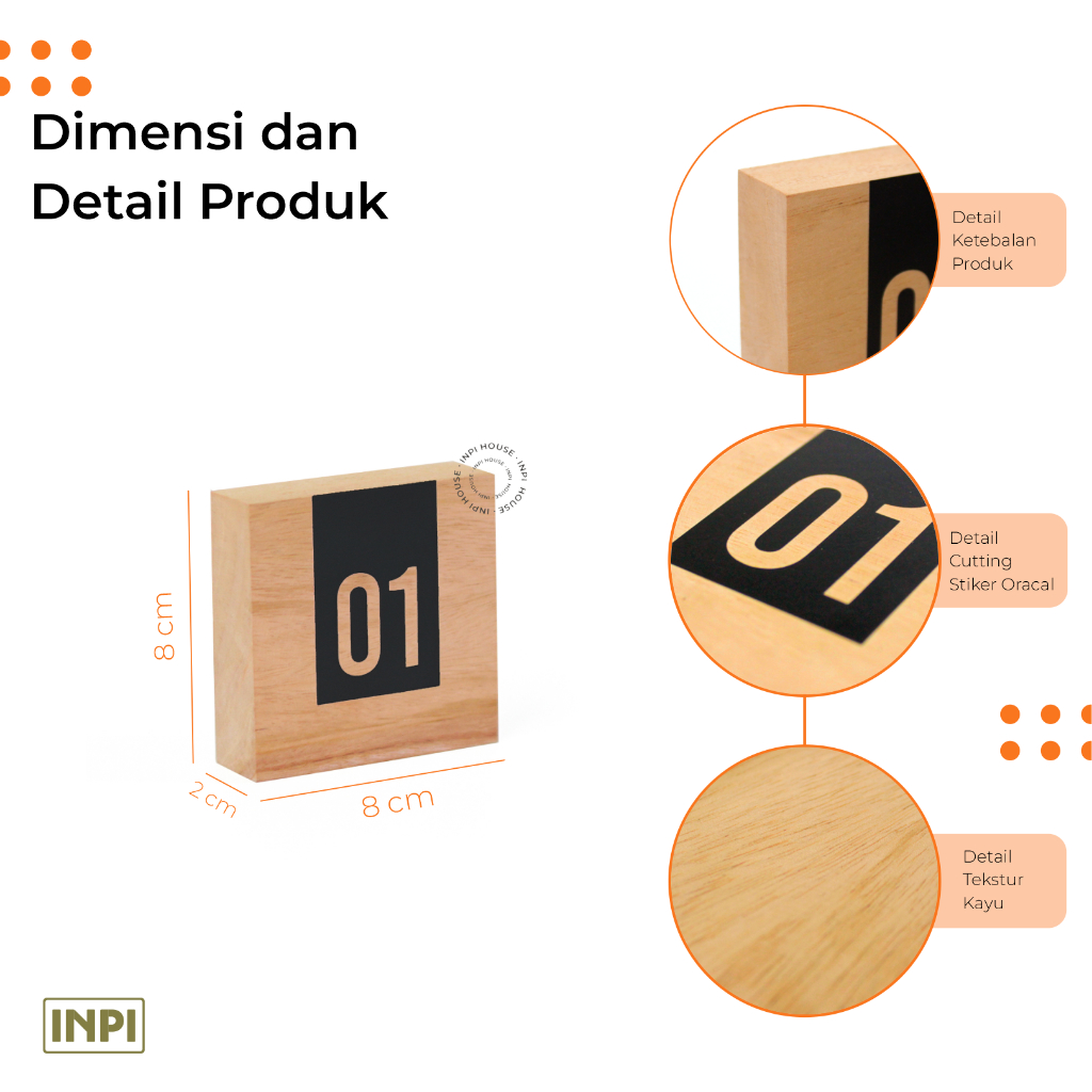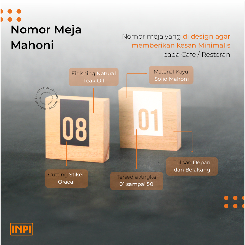 INPI HOUSE Signage Table Number - Table Number Sign Board - Dining HOUSE, Cafe - Wood
