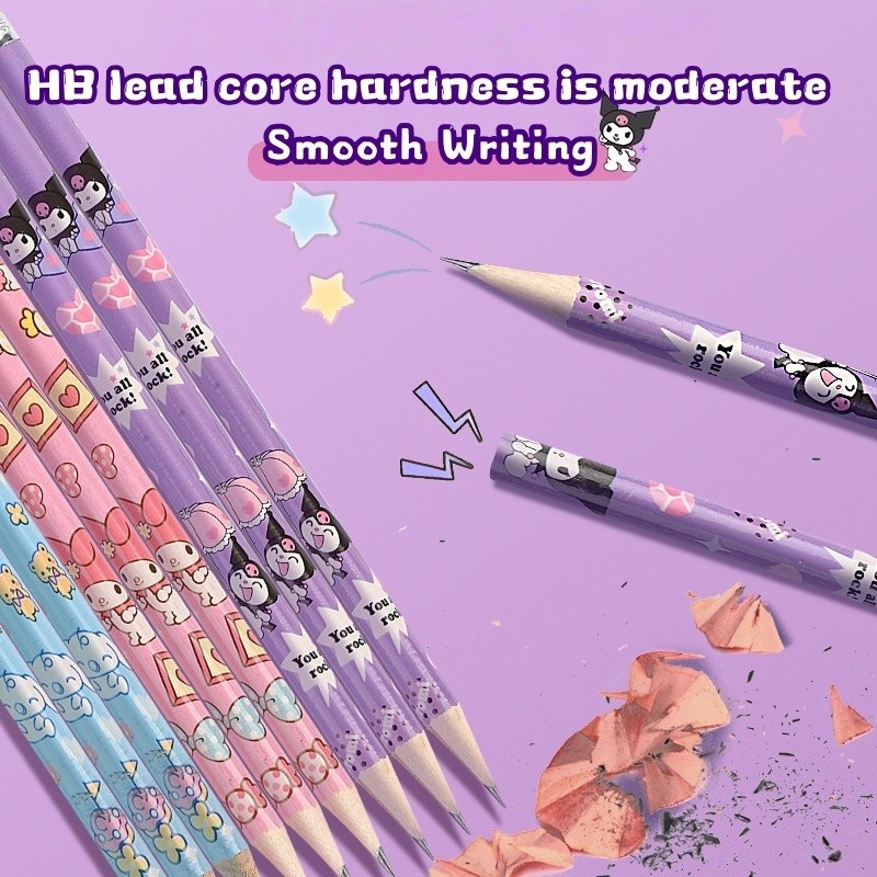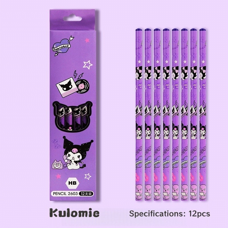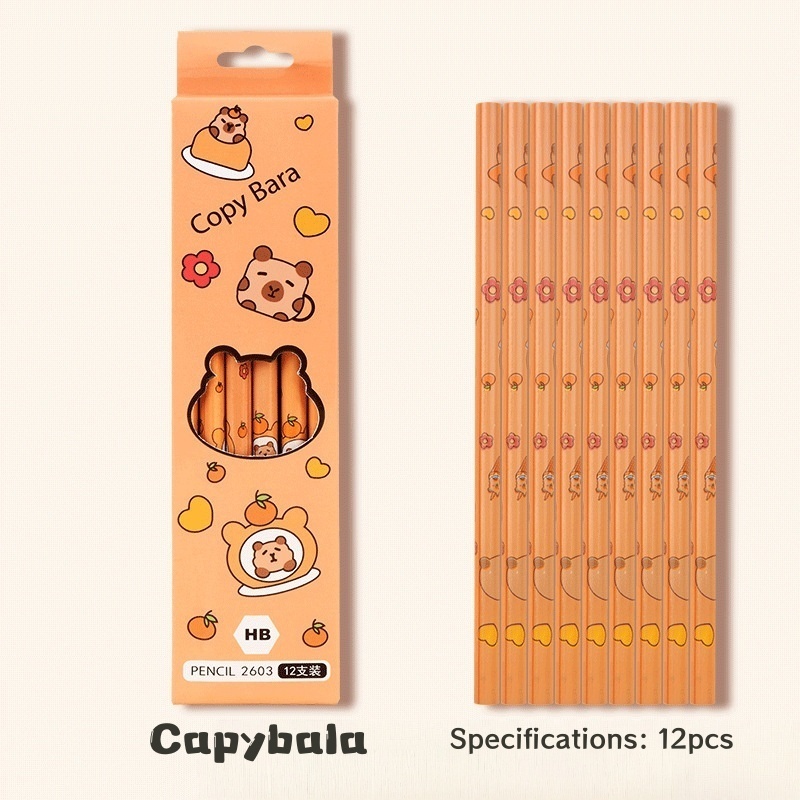 [Ready] 12Pcs/Box Capybara Pencil Box Cute Cartoon Kuromi Pencil Sketch Painting Pen HB Pencil School Writing