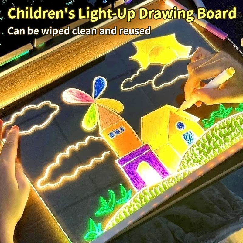 [Ready]LED Drawing Board Luminous DIY Children Eye Protection Drawing Board Writing Board For Kids Reusable Drawing Toys