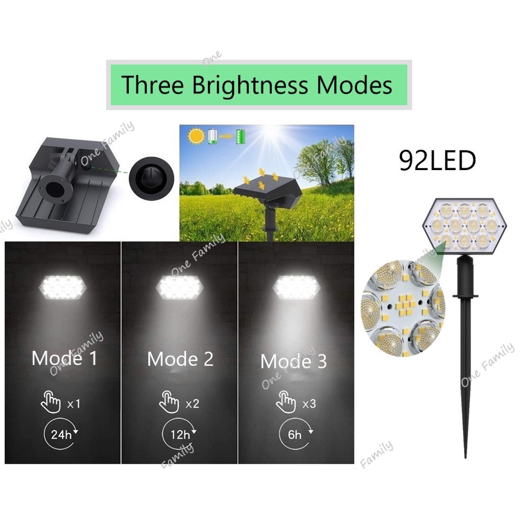 [Ready] Solar Lawn Spotlight 92LED | 108LED Garden Lampu Wall Path White/Warm USB