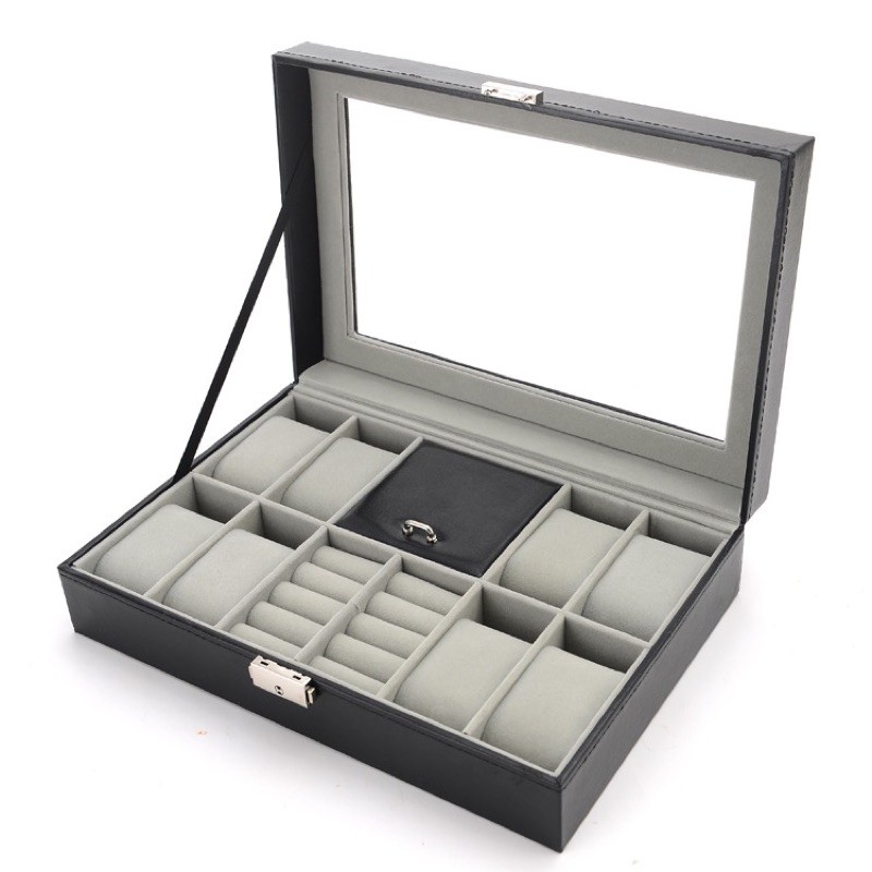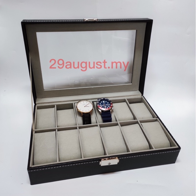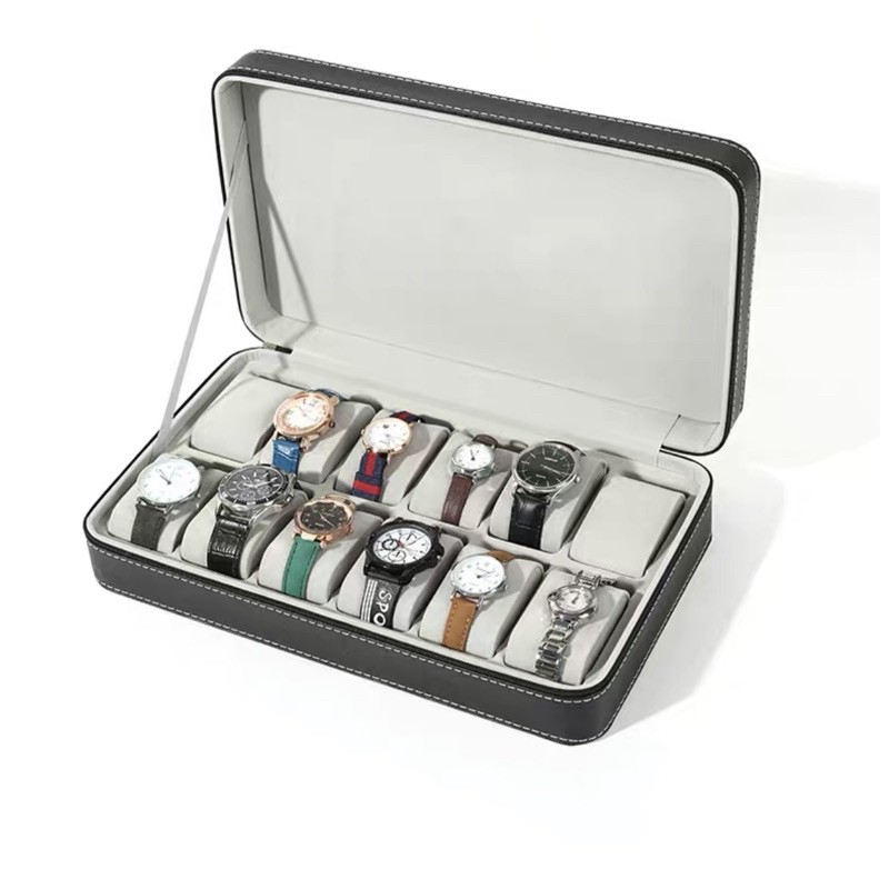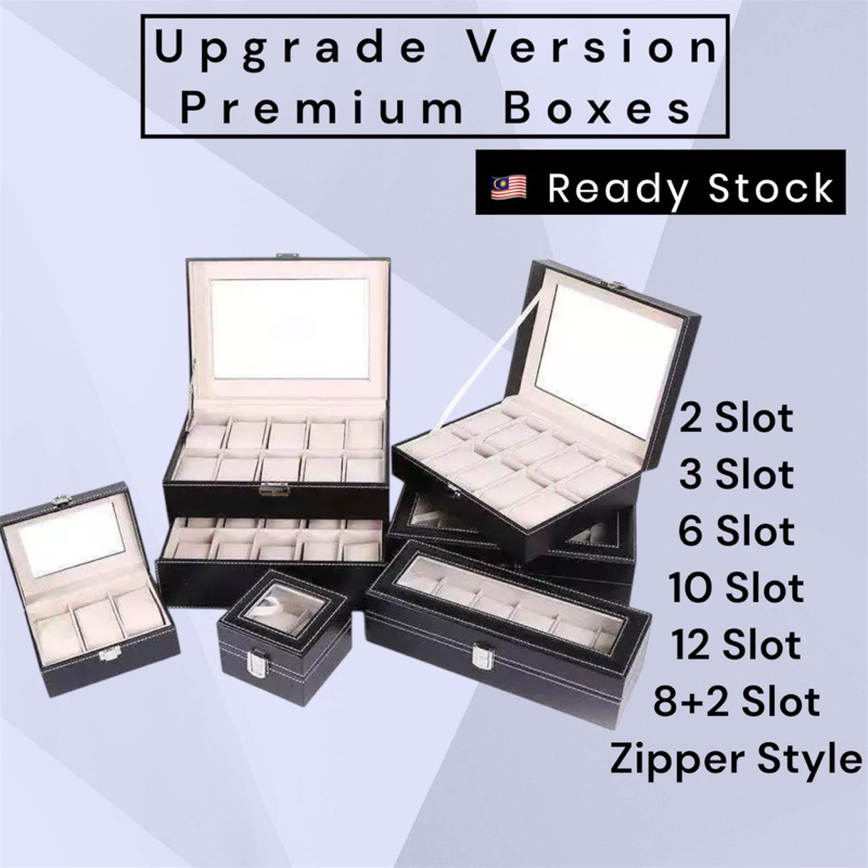 Ready Stock🇲🇾 Watch Box display Case Premium Quality 2 Slot/3 Slot/6 Slot/10 Slot/12 Slot/Zipper Design/Grey Box高档手表收纳盒