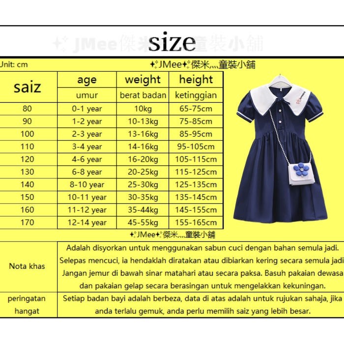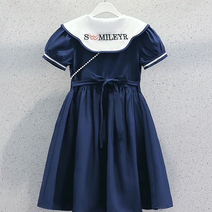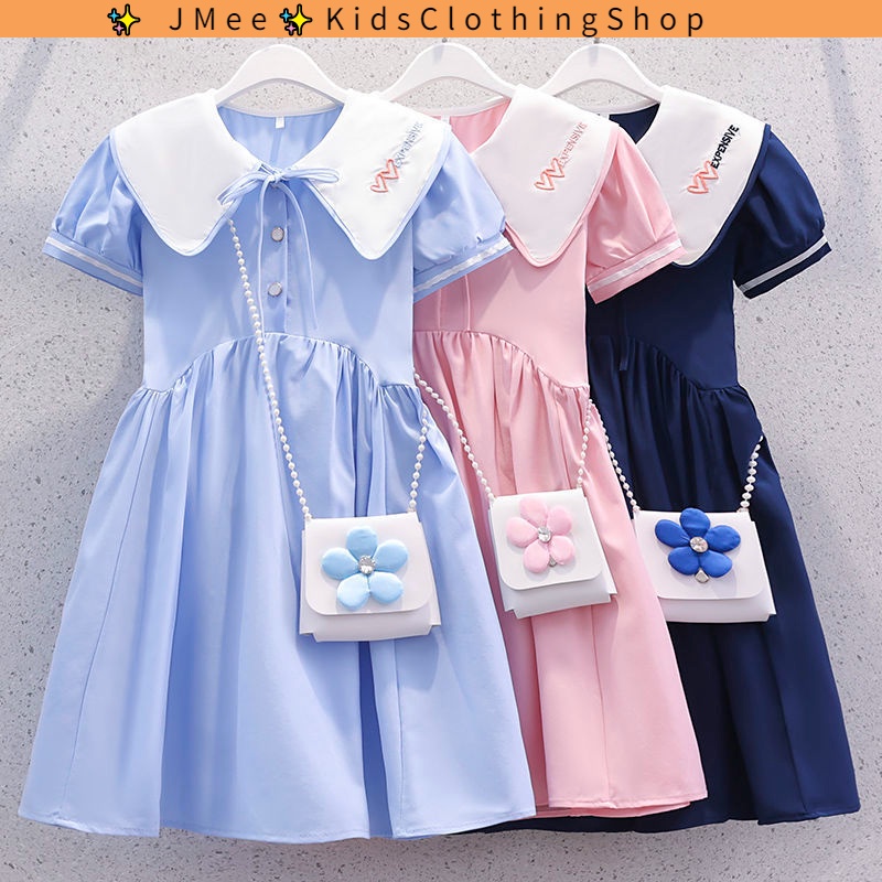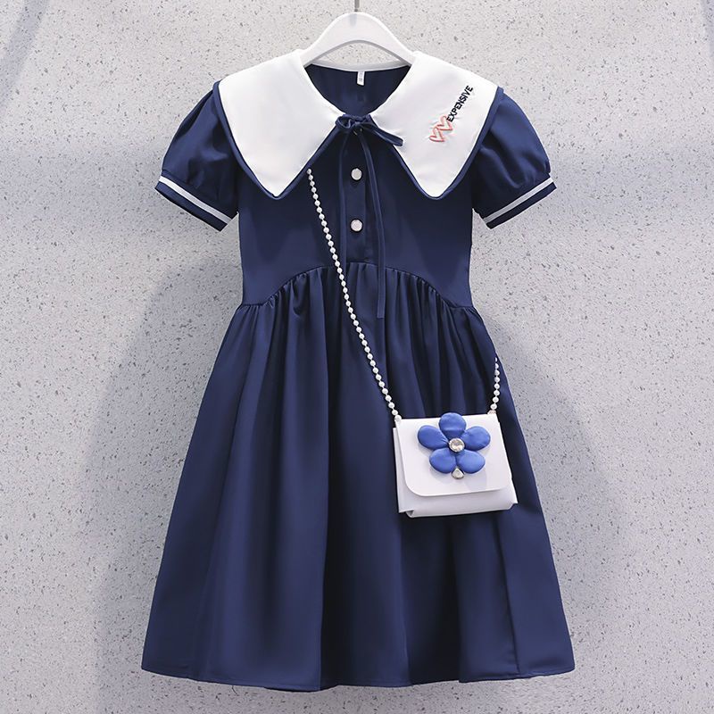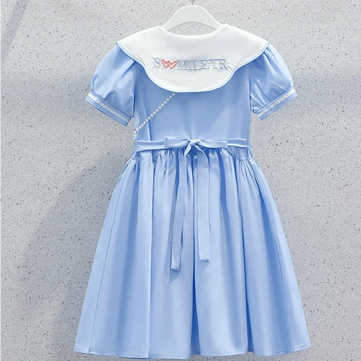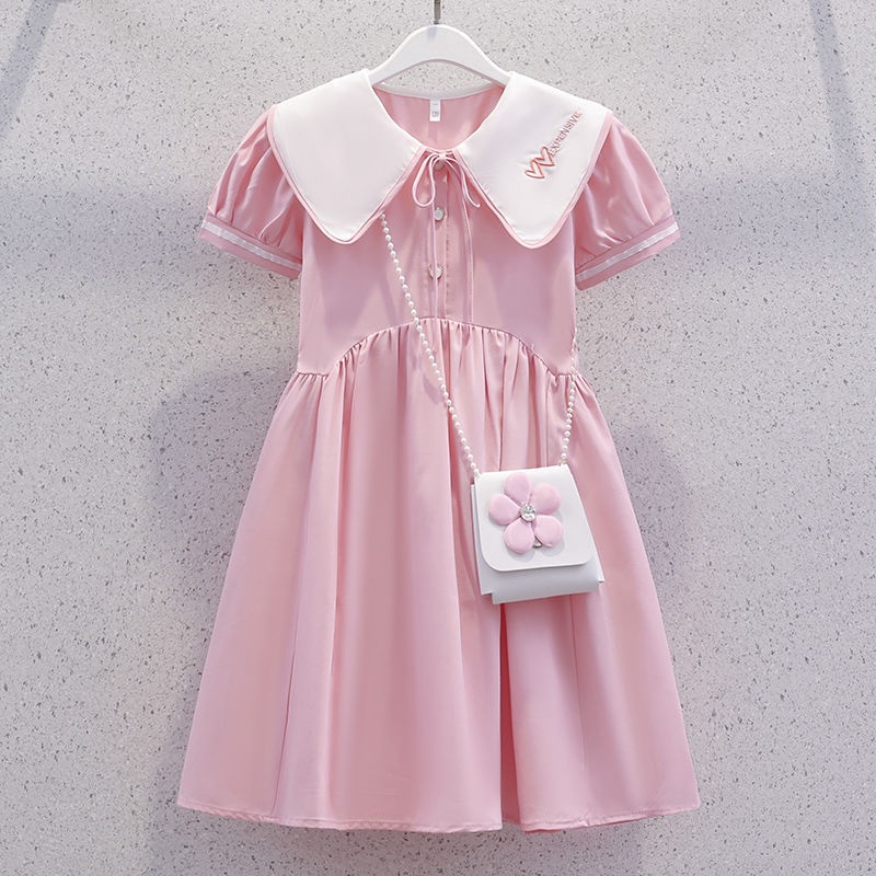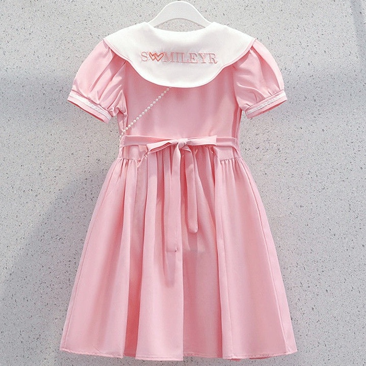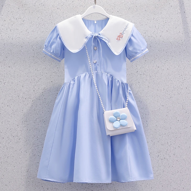 [Ready Stock] 3-14 years old girls' preppy dress 2022 new summer thin section children's foreign style skirt doll collar sweet princess skirt