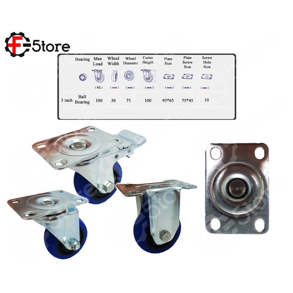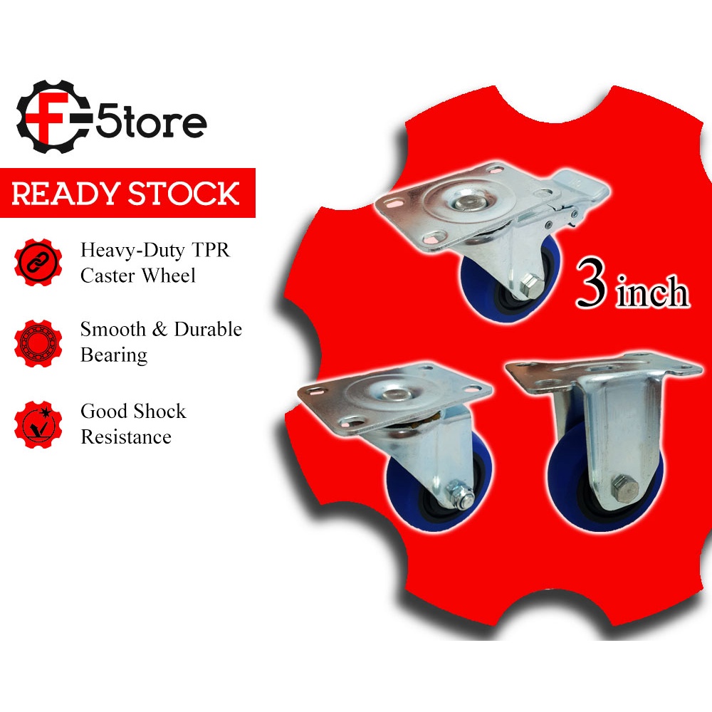 [Ready Stock] 3 inch (75MM) Medium Duty TPR Swivel/Fixed/Brake Caster Wheel / 3" Roda Trolley Wheel