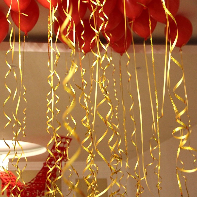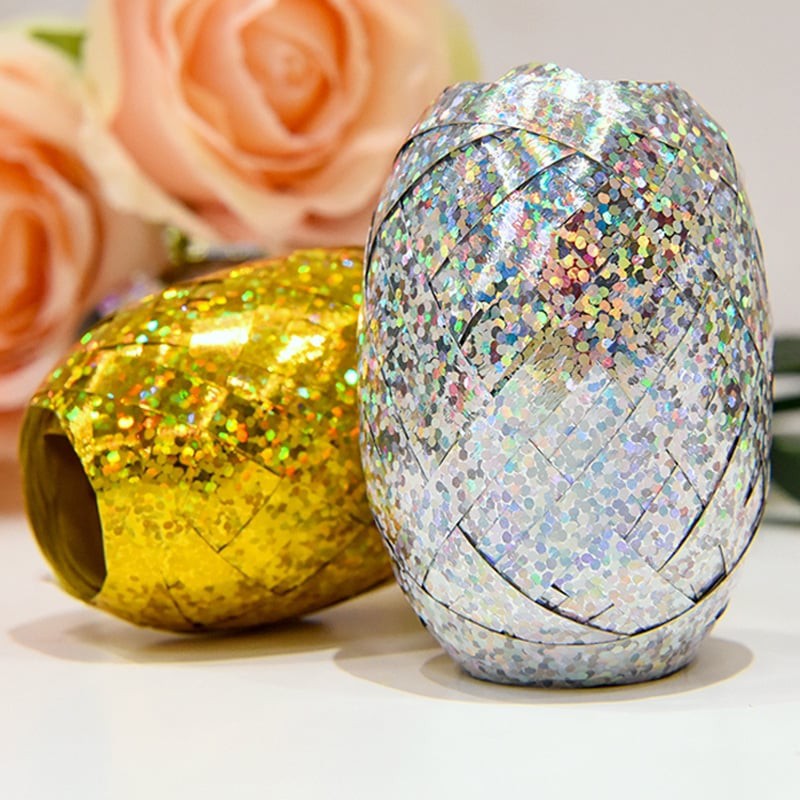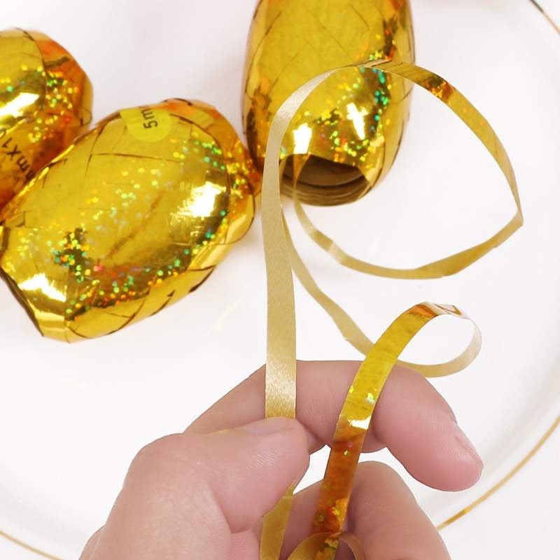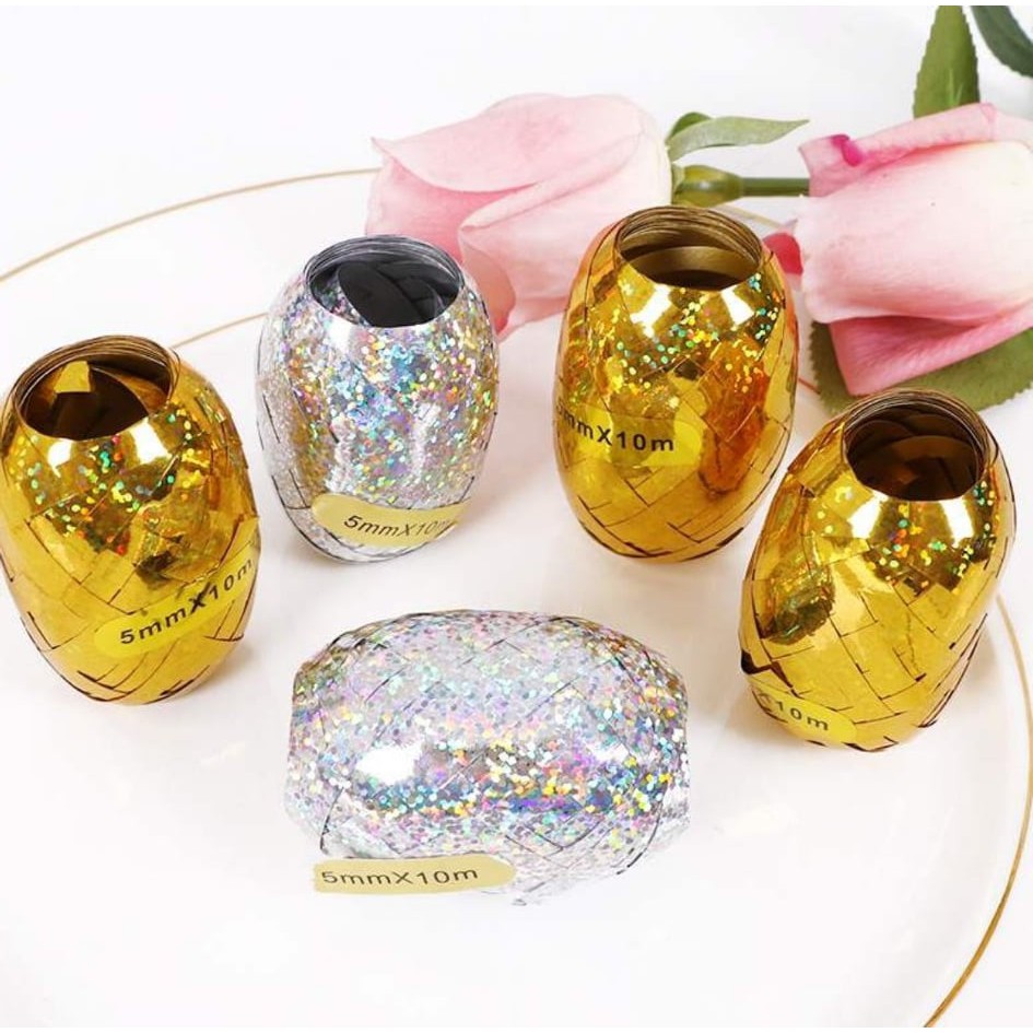 [Ready Stock] 5mm*10m Balloon Rope Foil Balloon Laser Gold Ribbon FREE GIFT
