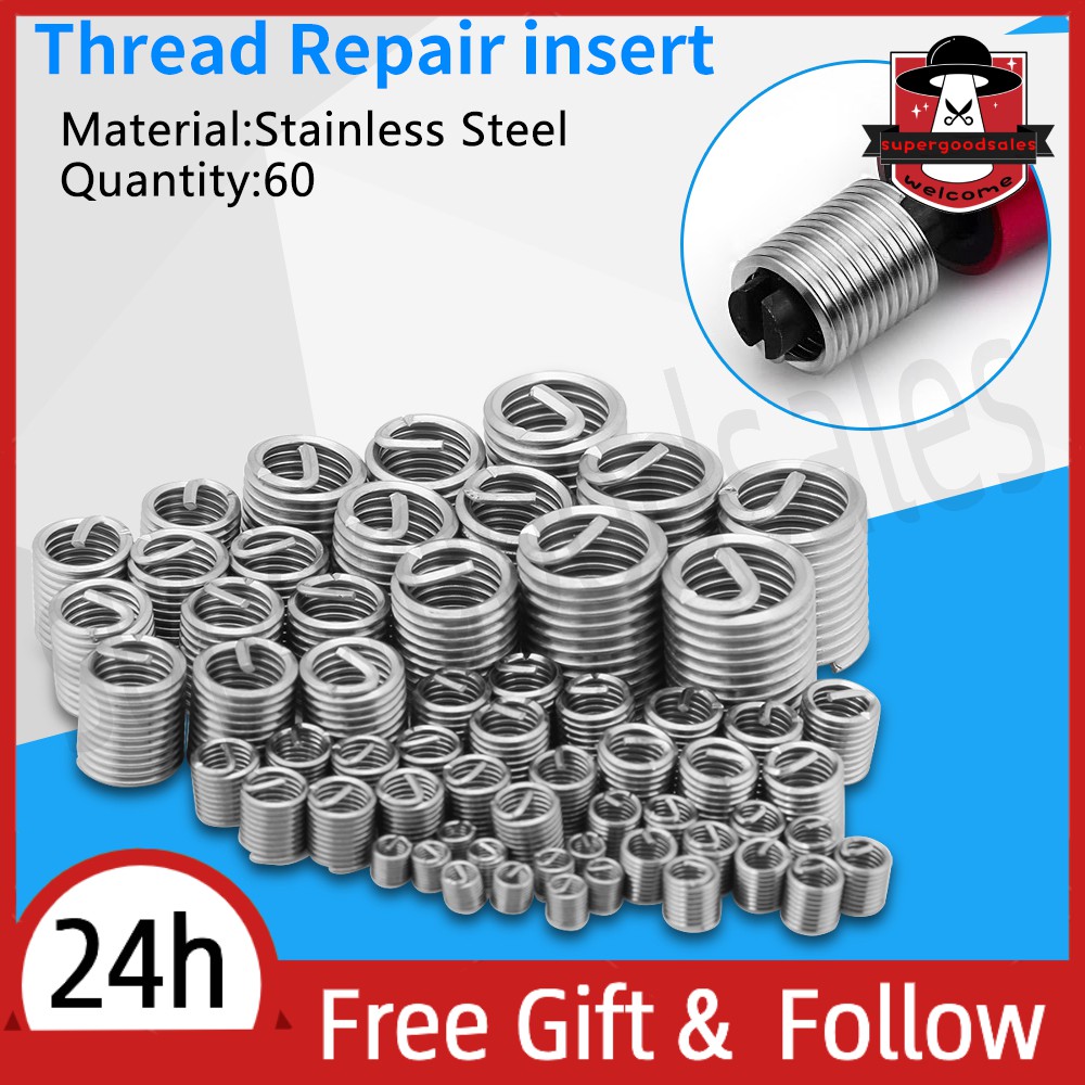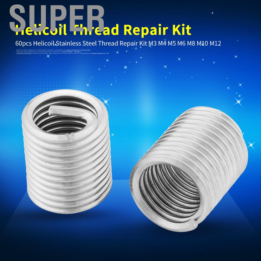 [Ready Stock] 60pcs Stainless Thread Repair Kit M3 M4 M5 M6 M8 M10 M12