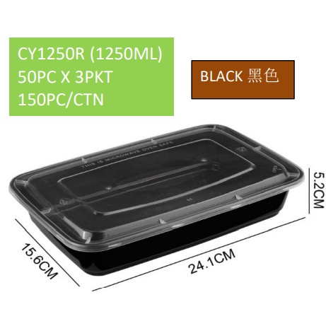 [Ready Stock] 750ml/1000ml/1250ml Rectangular Disposable Plastic Food Container / 10 sets/50 sets/ Transparent/ Black