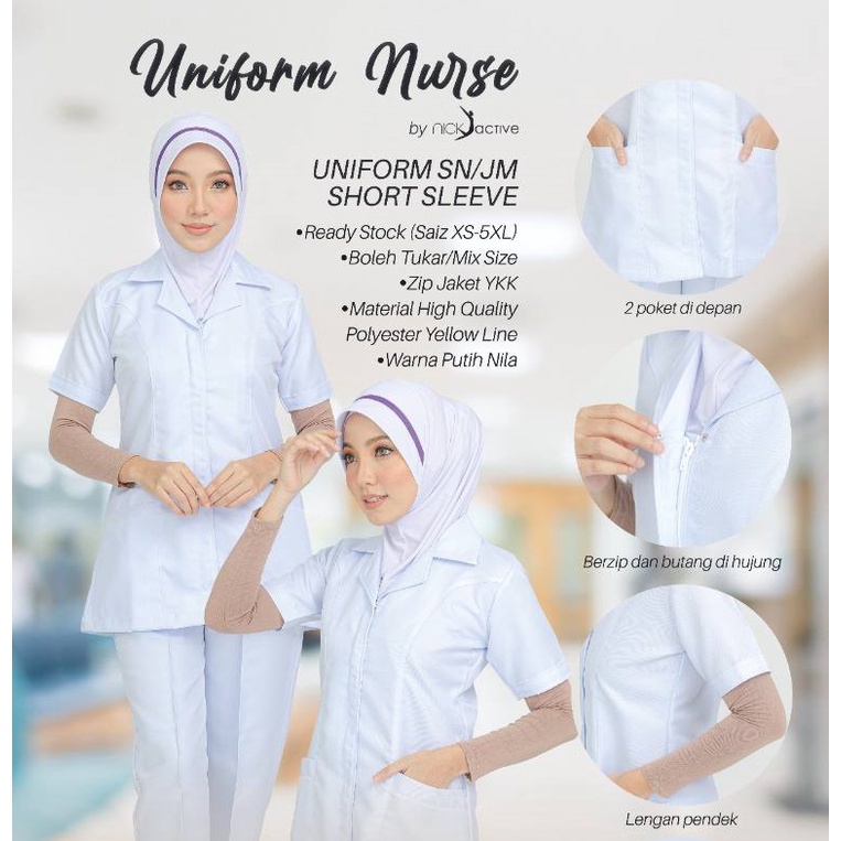 [Ready Stock] Baju Nurse Uniform Jururawat Zip SN JM Lengan Pendek Ready Made