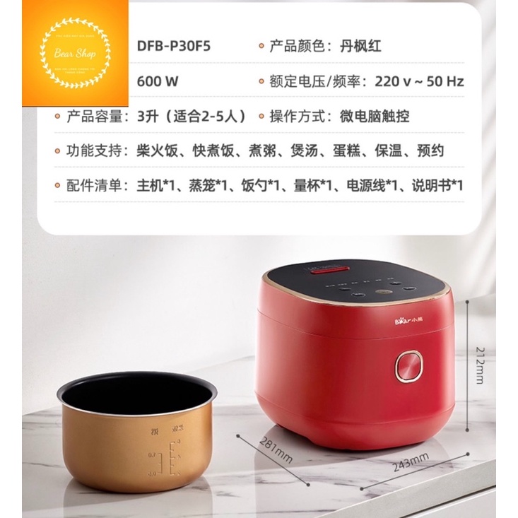 [Ready Stock] [China Domestic Products] Genuine Bear Rice Cooker 3L Capacity, New Model 2022, High-Frequency Multi-Purpose Pot Keeps The Full Flavor Of Piece Meals
