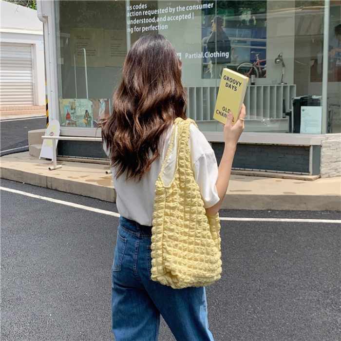 [Ready Stock] Cloud Bag Bubble Fabric Tote Bag Student Shoulder Bag Women Fashion Totebag Awan Korean Ins Murah