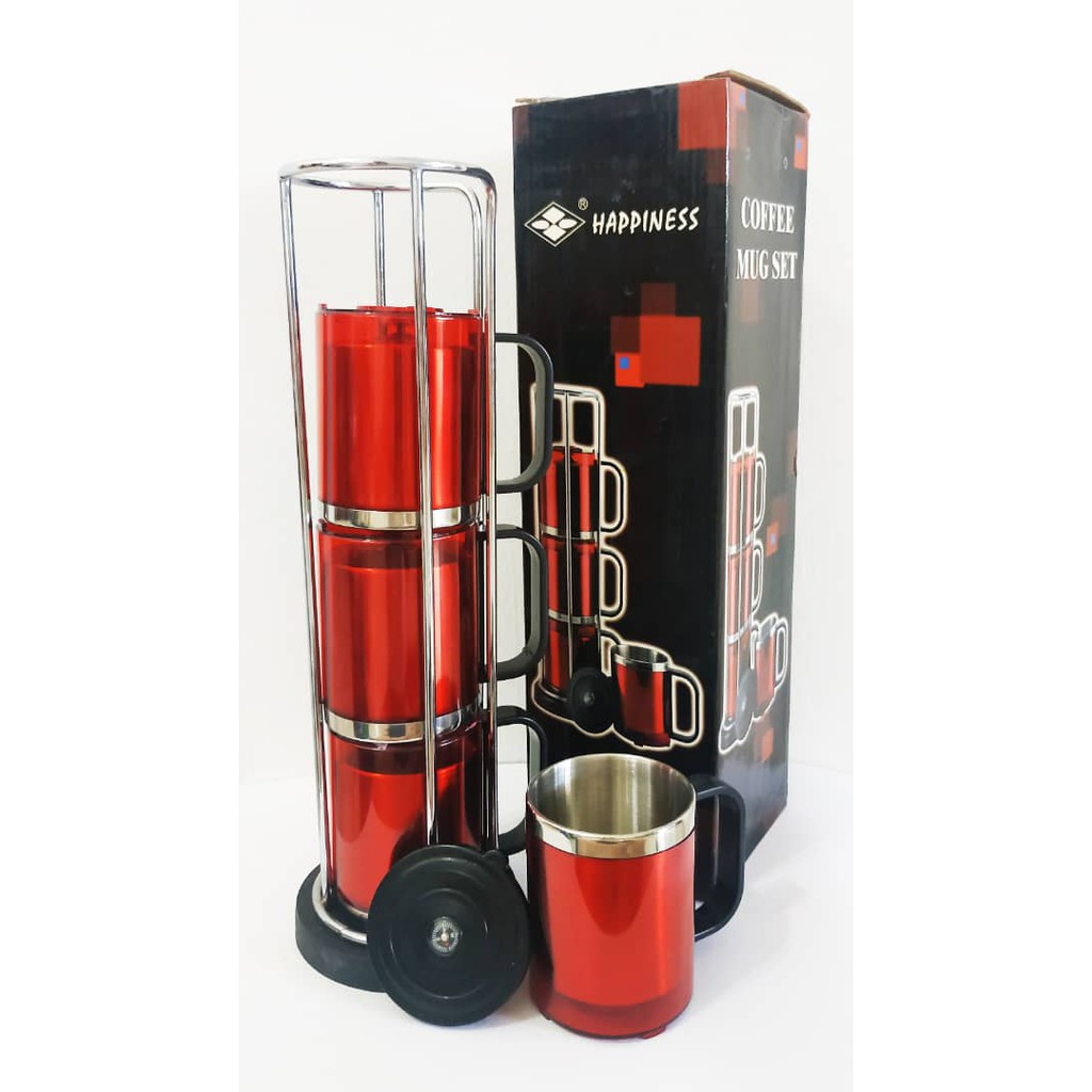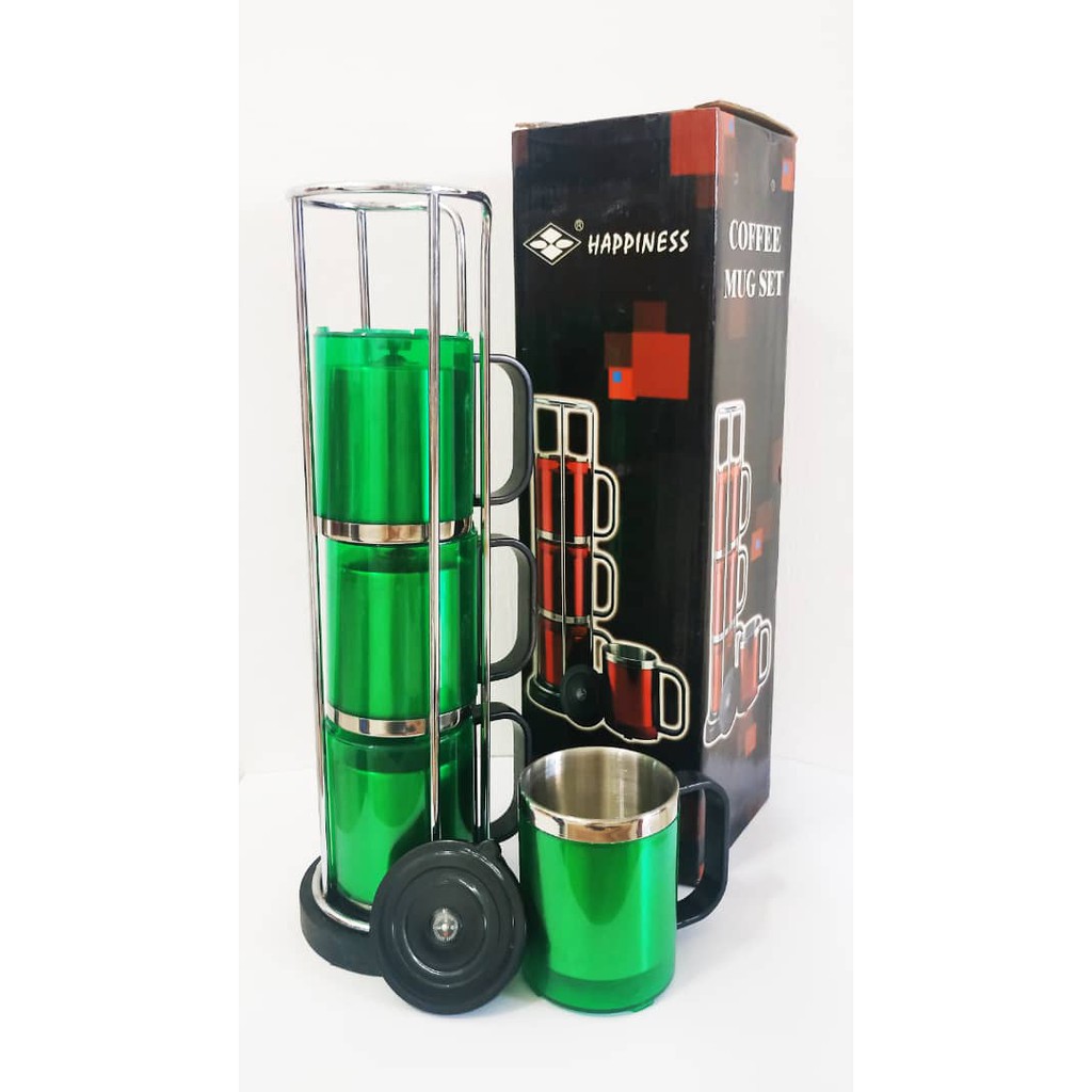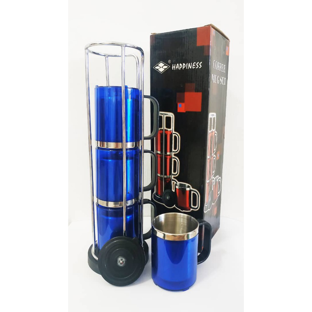 [Ready Stock] Coffee Mug Set with Lid 4pc/Set with Lid (Red/ Blue/ Green)