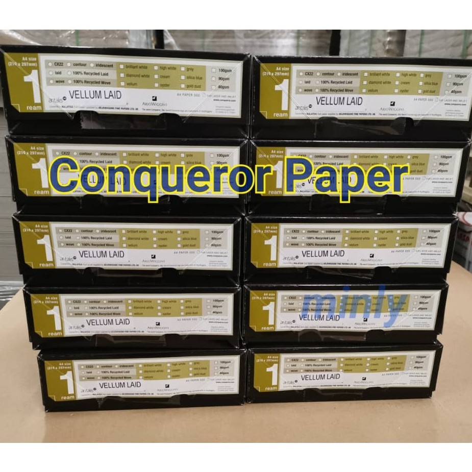 [Ready Stock] Conqueror Paper 100gsm Laid A4 All colors (500pcs/ream)