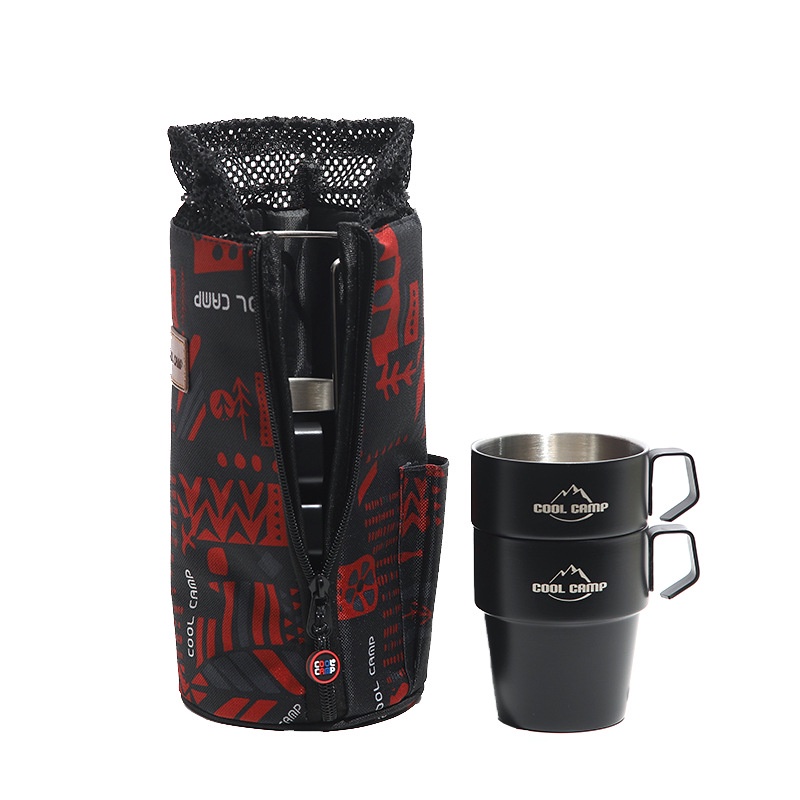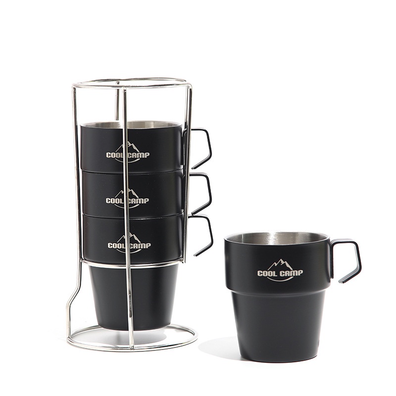 [Ready Stock] Cool Camp Stainless Steel Camping Coffee Mugs With Holders Set of 4pcs (Khemah / Camping)