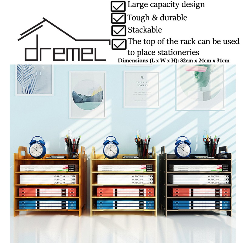 {Ready Stock} DREMEL Multi-layer Wooden Desktop Office File Holder Stackable Document Rack Storage Shelf Organizer
