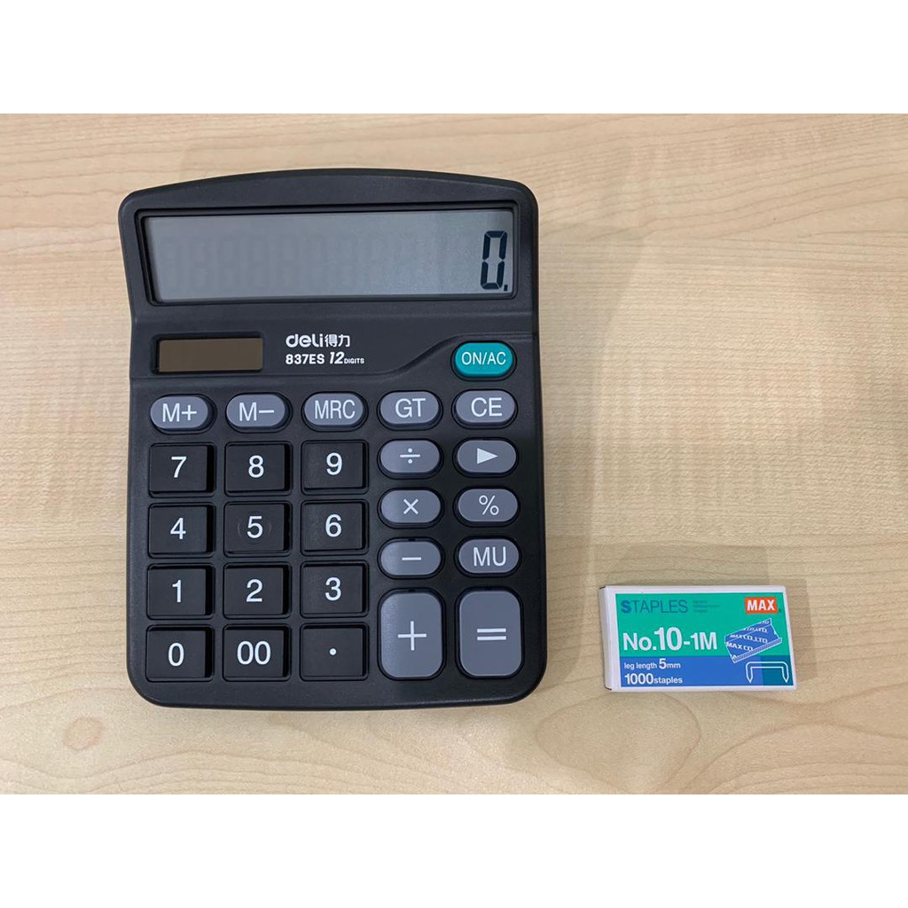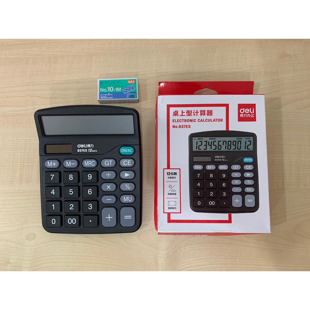 [Ready Stock] Deli 12-Digit Solar Battery Calculator Dual Power Desktop Electronic Calculator Kalkulator (837ES)
