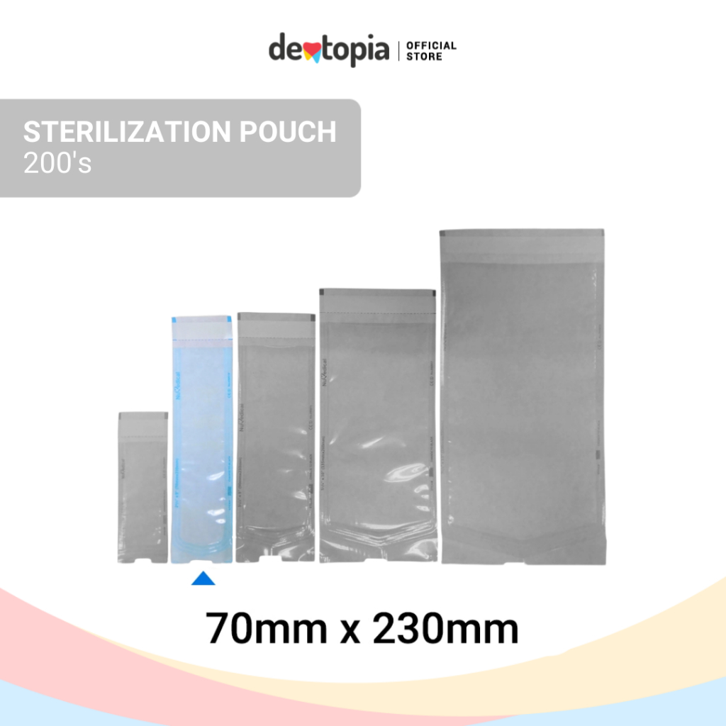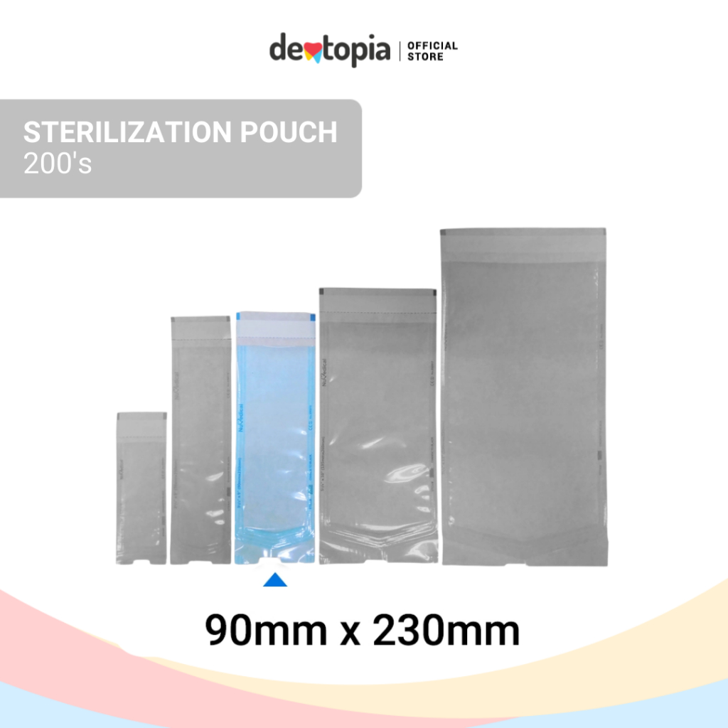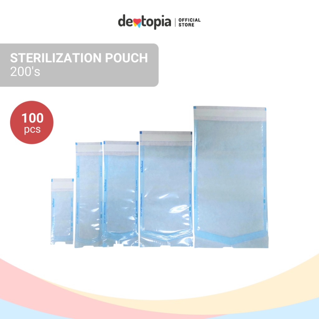 [Ready Stock] Dentopia Sterilization Pouch 200pcs Autoclavable Sterilisation with Steam Indicator | Blue Tinted