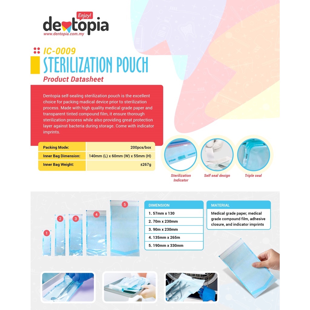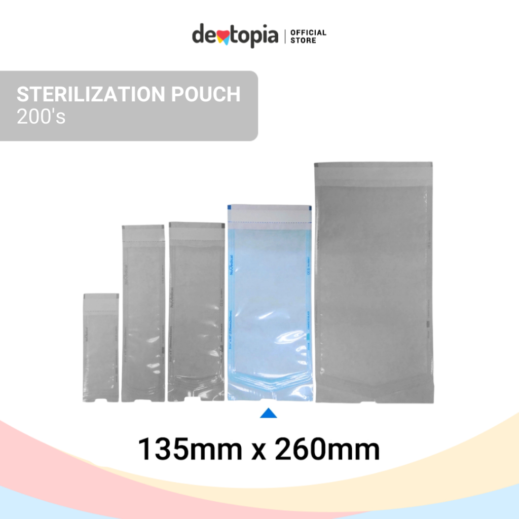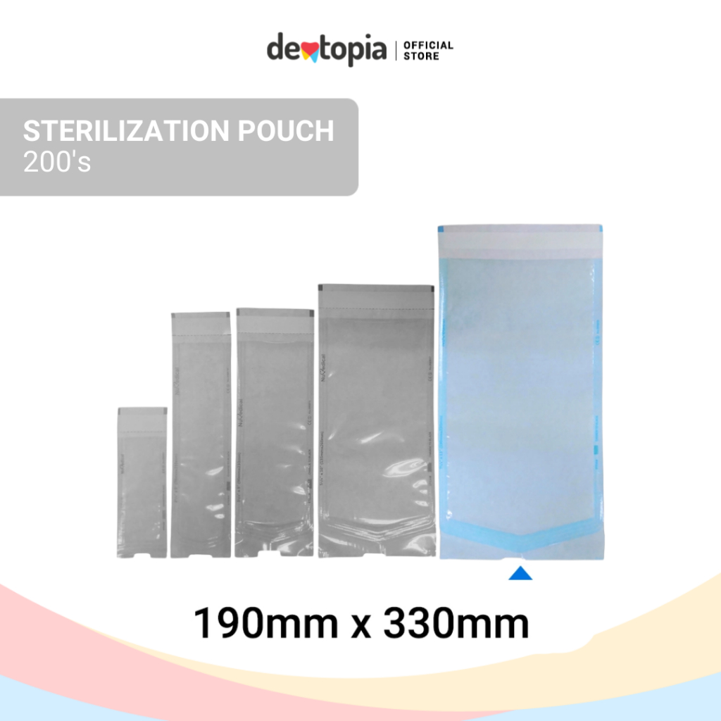 [Ready Stock] Dentopia Sterilization Pouch 200pcs Autoclavable Sterilisation with Steam Indicator | Blue Tinted