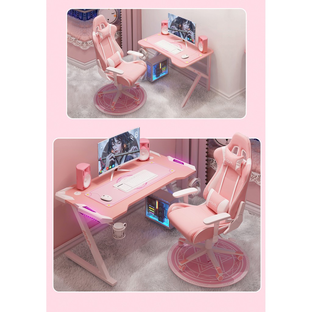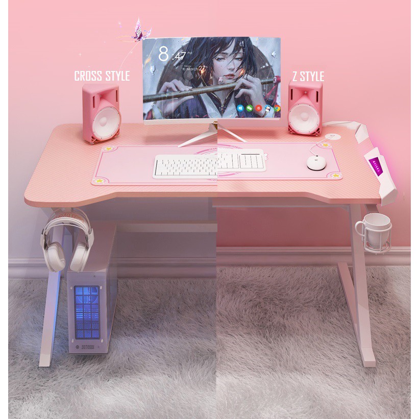 [Ready Stock] Falcon Pink Series RGB Gaming Table / PC Desk / Computer Workspace / Office Table
