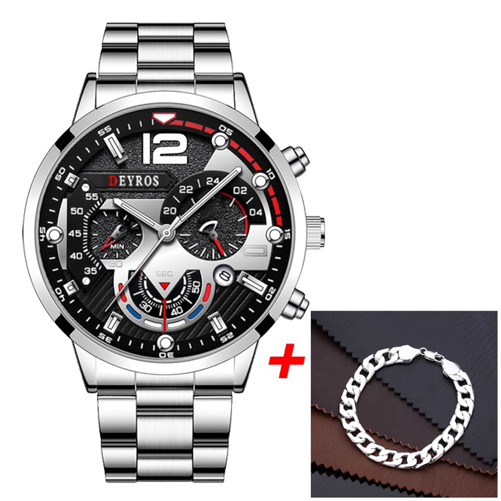 [Ready Stock]Fashion Men Watches Silver Stainless Steel Watch and Bracelet Analog Quartz Wrist Watches Business Watch for Man Gifts