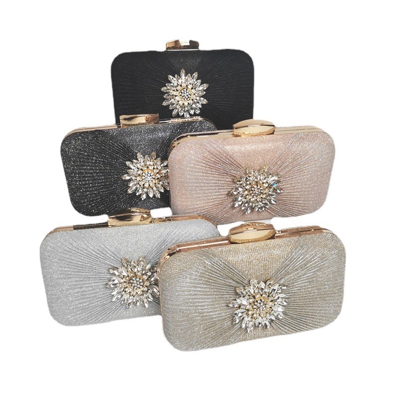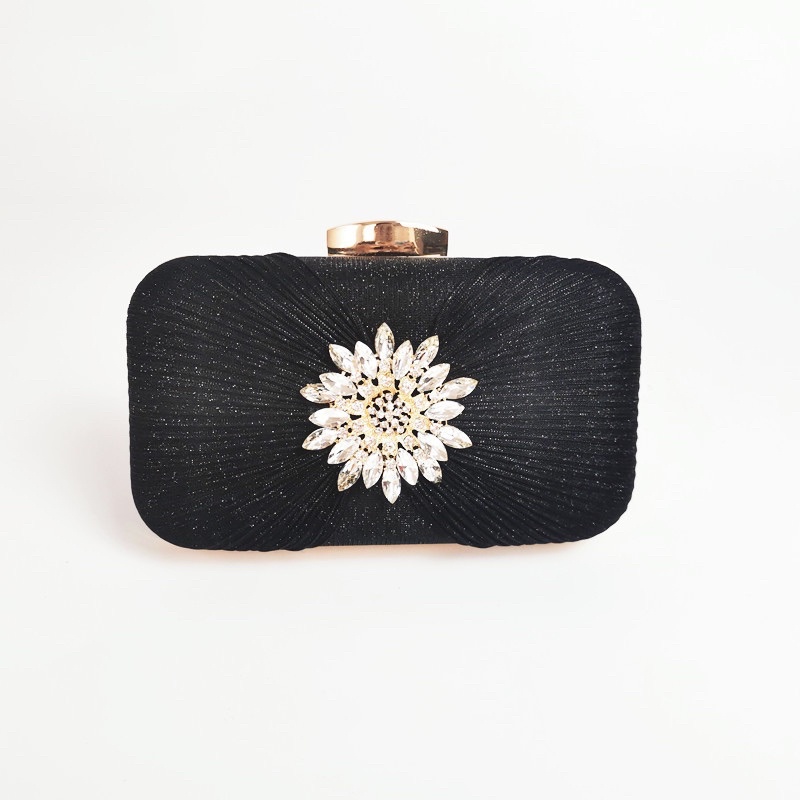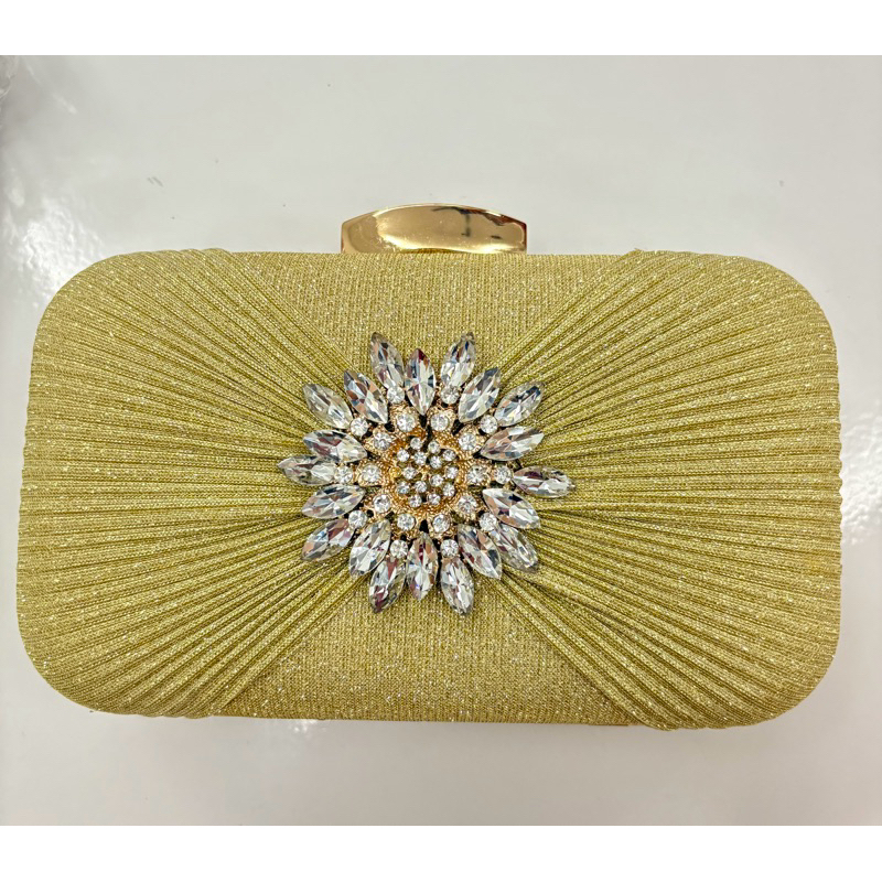 [Ready Stock] Fashion Portable Dinner Bag Pleated Evening Bag Flower Dress Ladies Clutch Bag