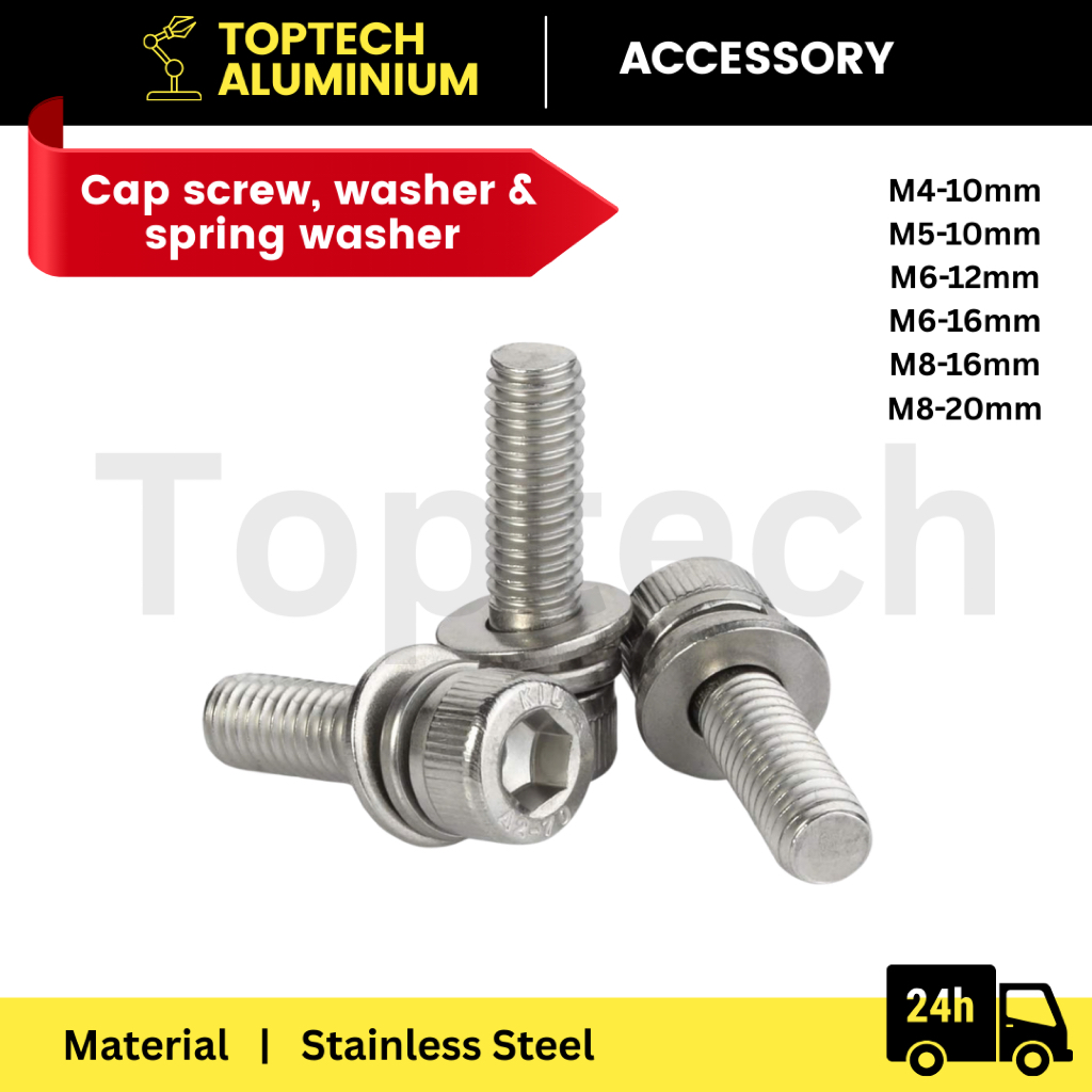 [Ready Stock/Fast Delivery] Cap Screw M4 / M5 / M6 / M8 Washer & Spring Washer for Aluminium Profile