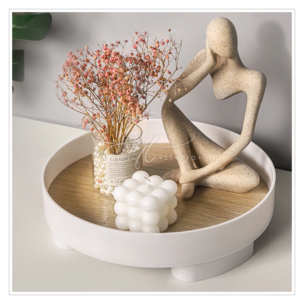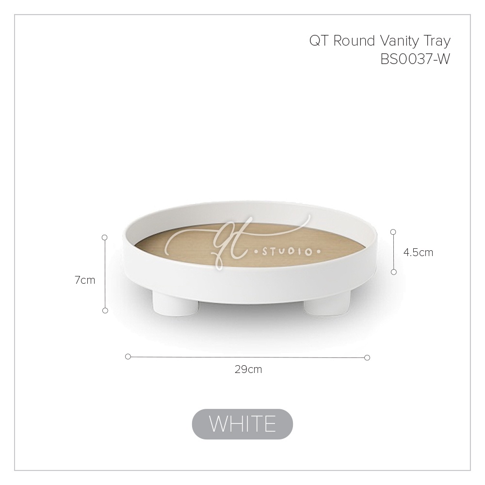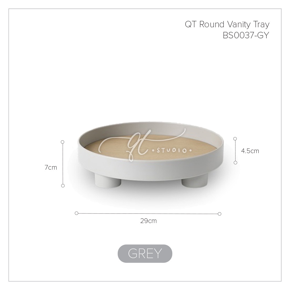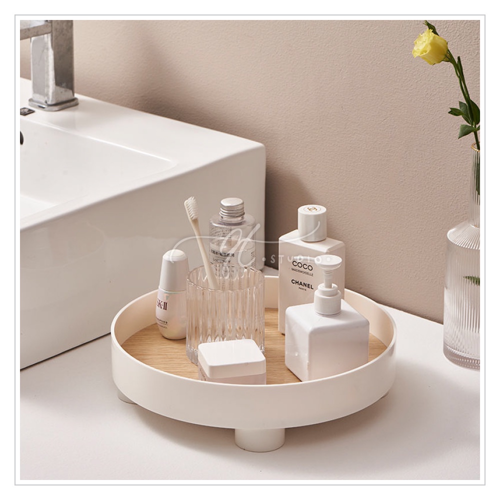 [Ready Stock] Footed Round Vanity Tray Wooden Base / Desk Bathroom Organizer BS0037